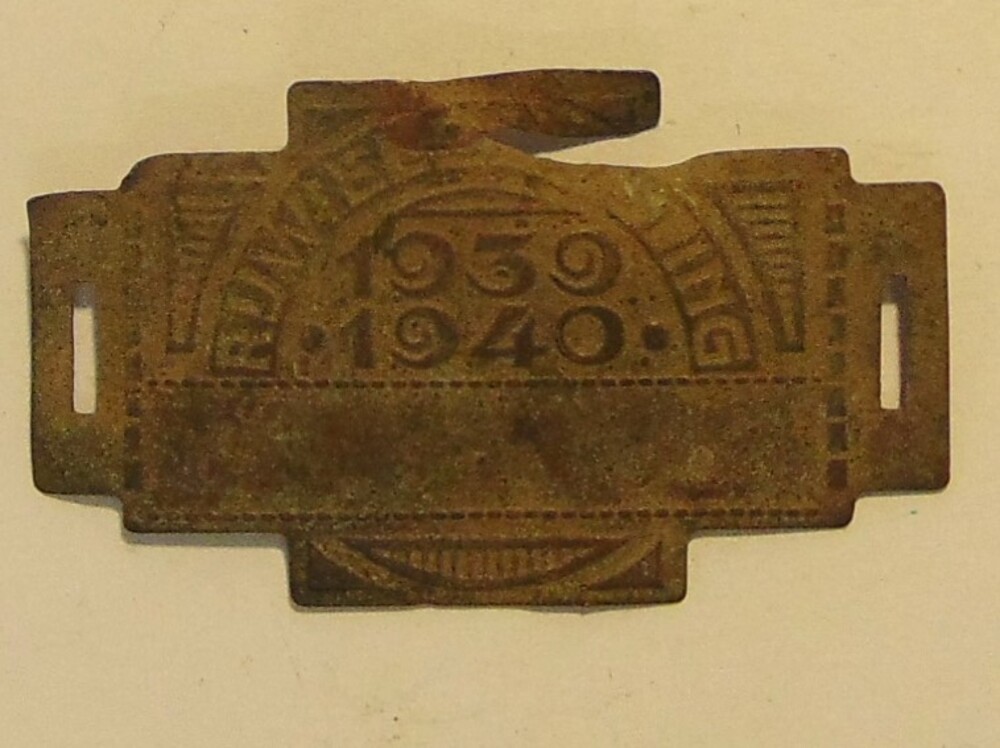 Plaat. Nederland. Rijwielbelastingplaatje. 1939-1940.