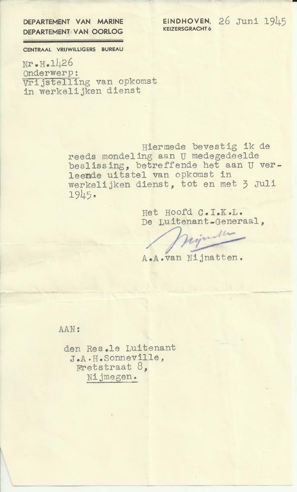 Departement van Marine Departement van Oorlog 26 jun...