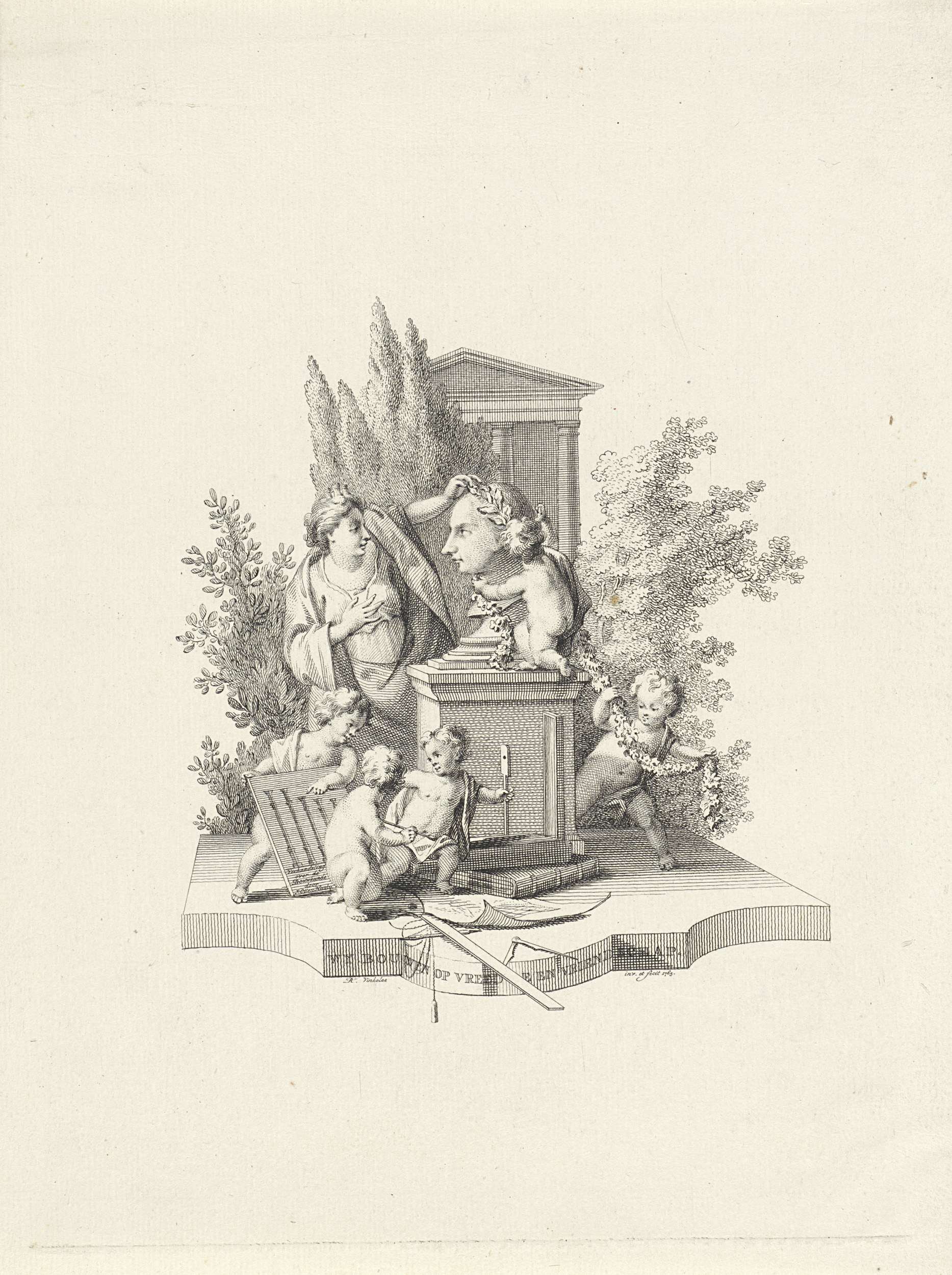 Allegorische voorstelling met een buste van Jacob Ot...