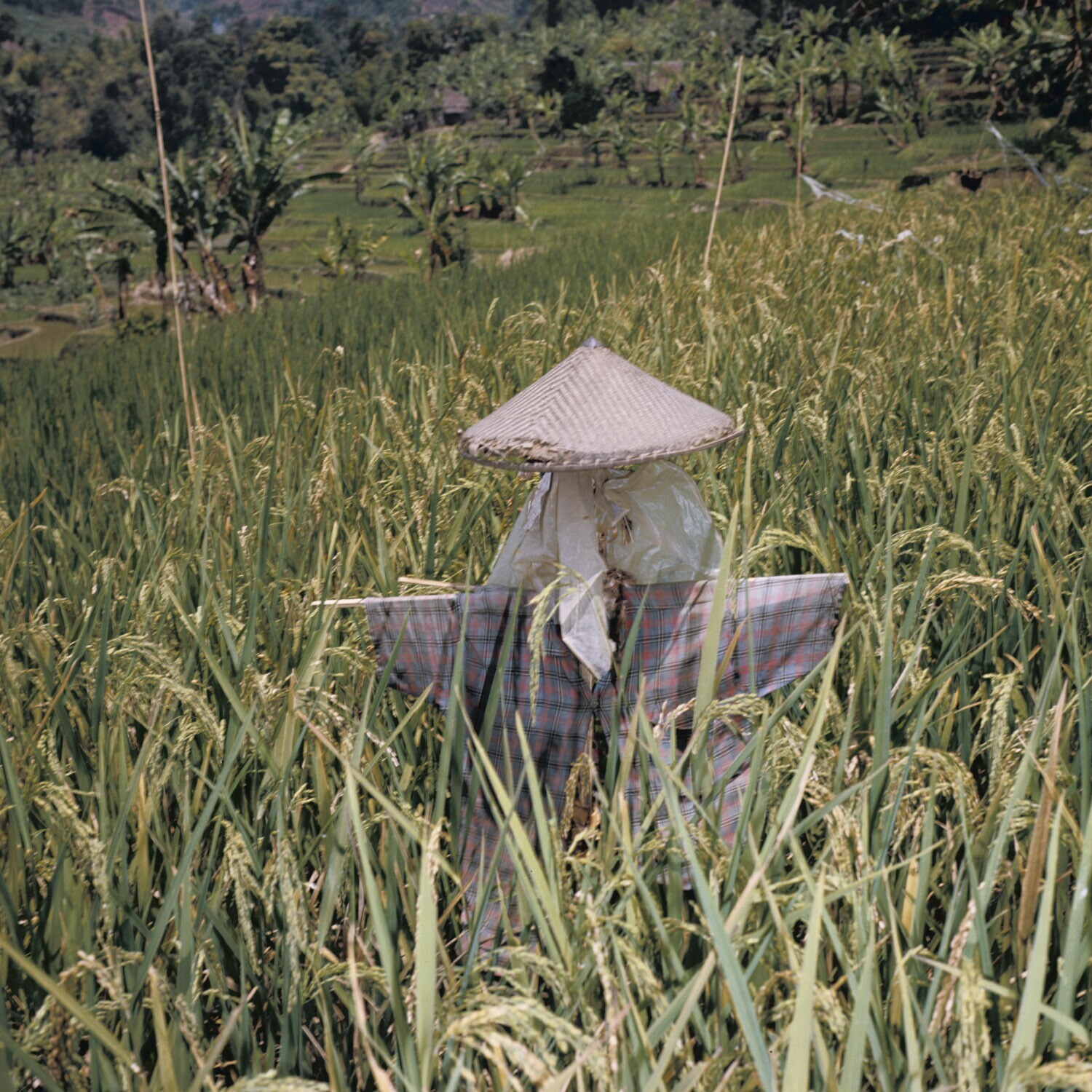 Vogelverschikker in een rijstveld