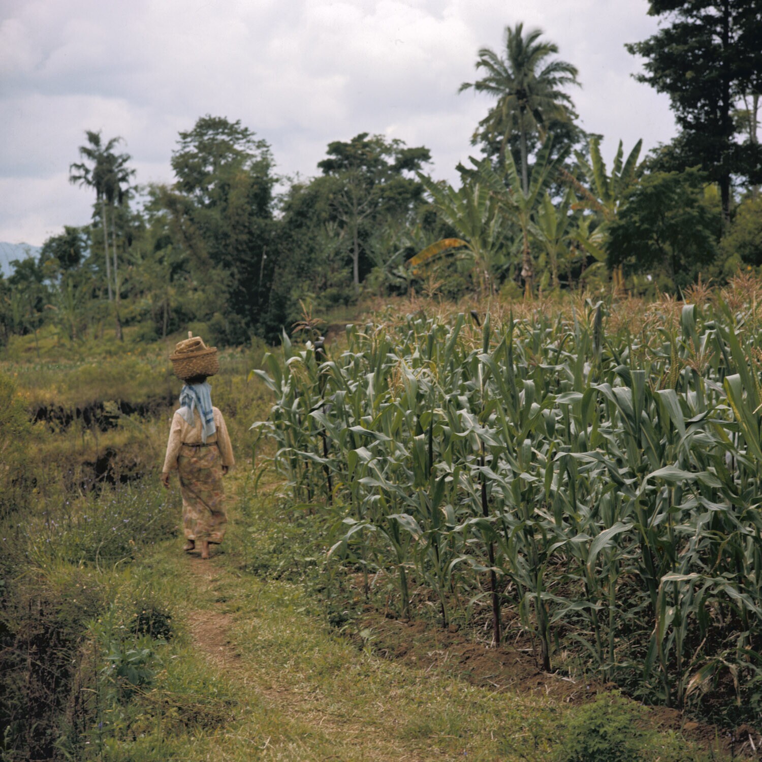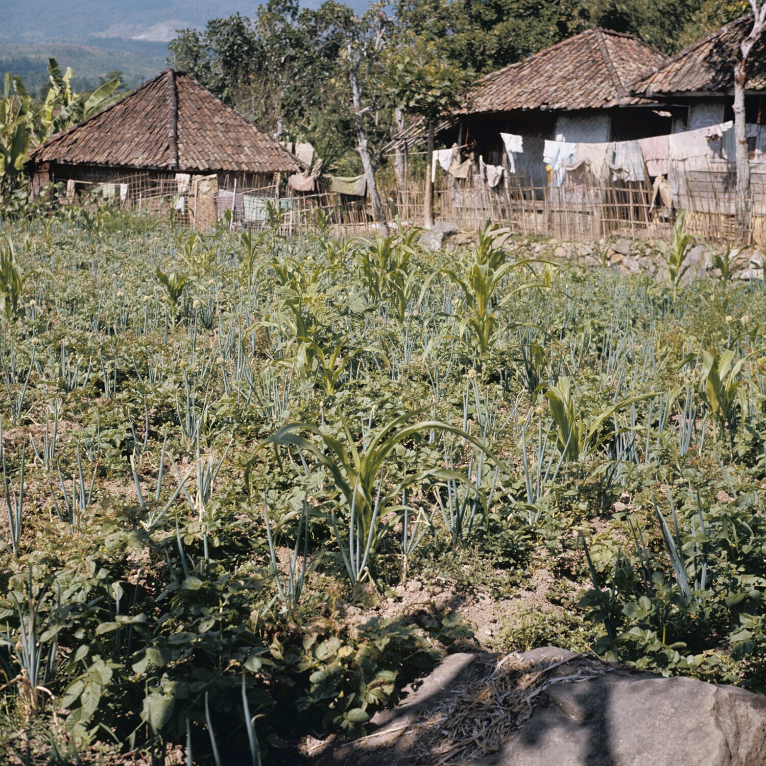 Erflandbouw met o.a. uien, mais, bonen, Java