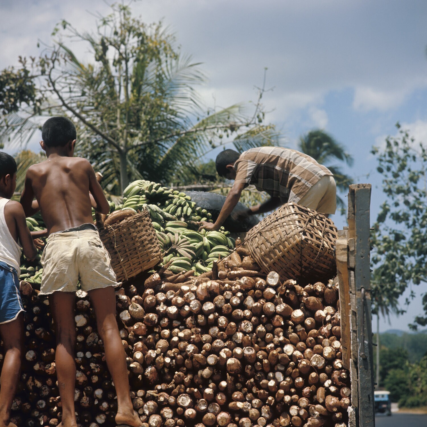 Transport van de cassaveoogst met een vrachtwagen
