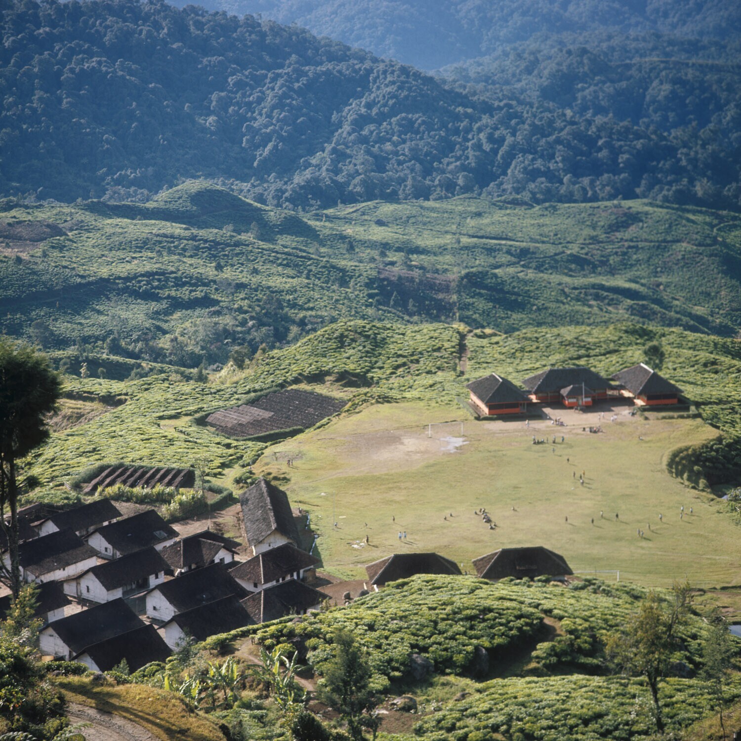 Theeplantage met de arbeiderswoningen