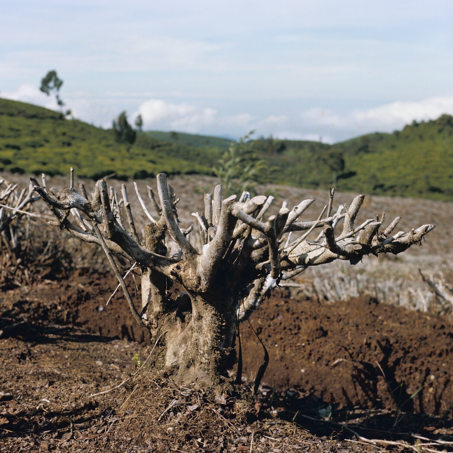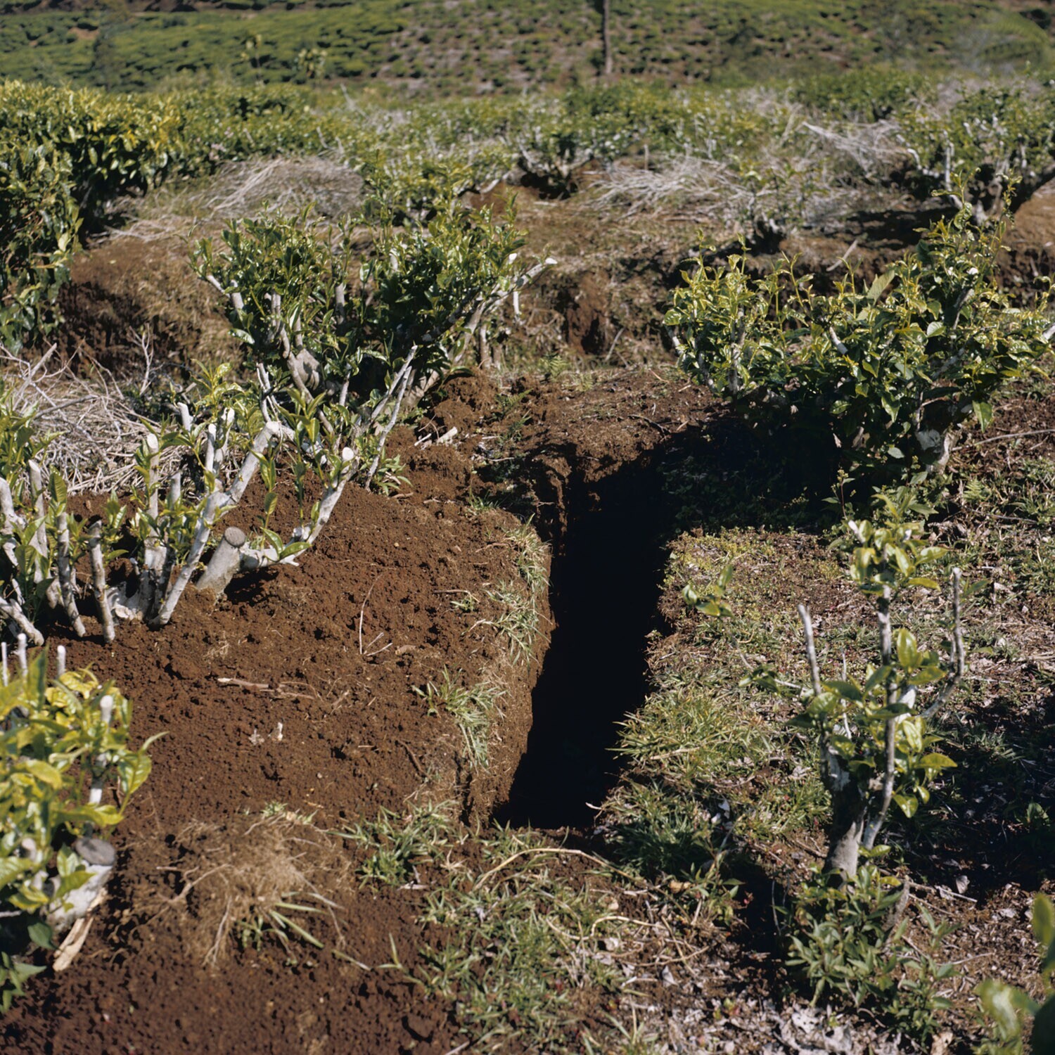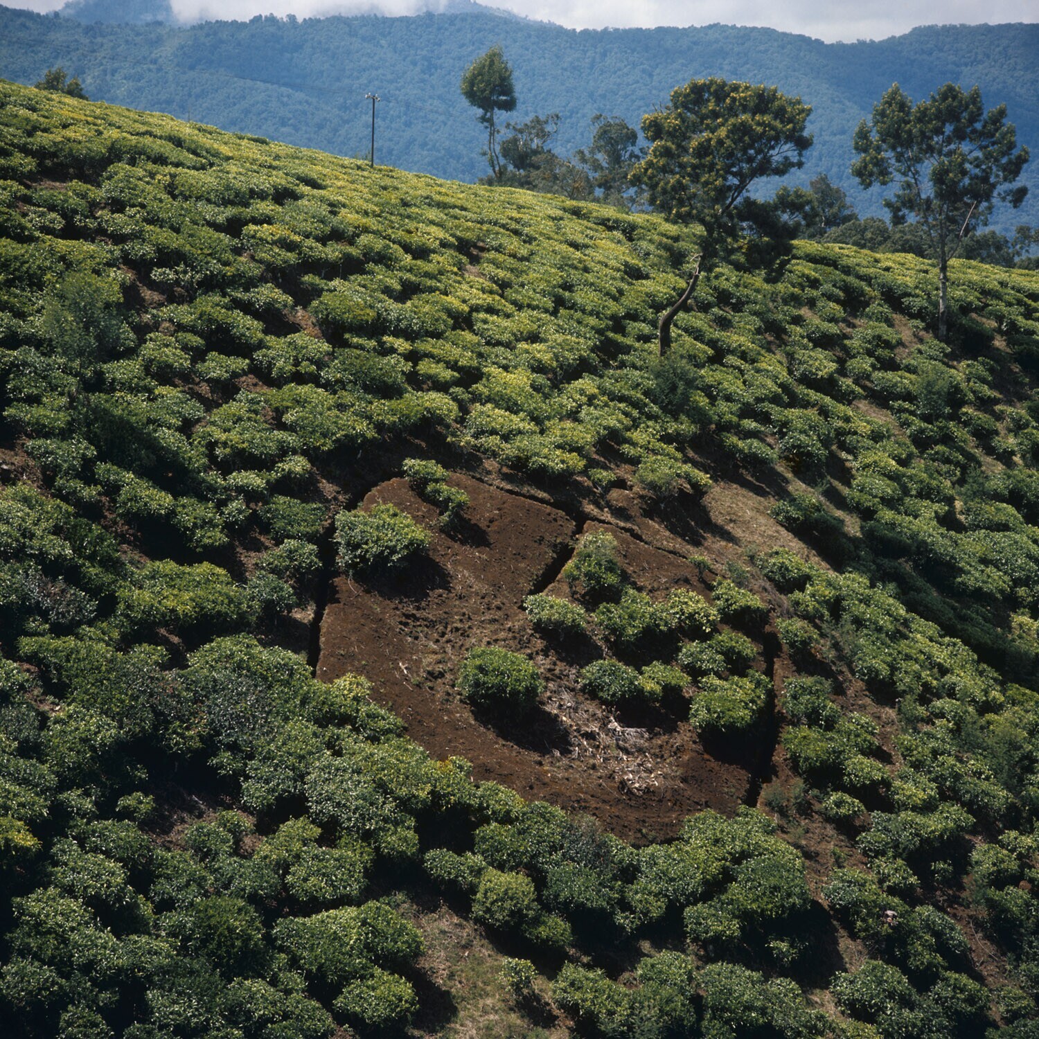 Plek in thee-aanplant waar zieke planten reeds zijn ...