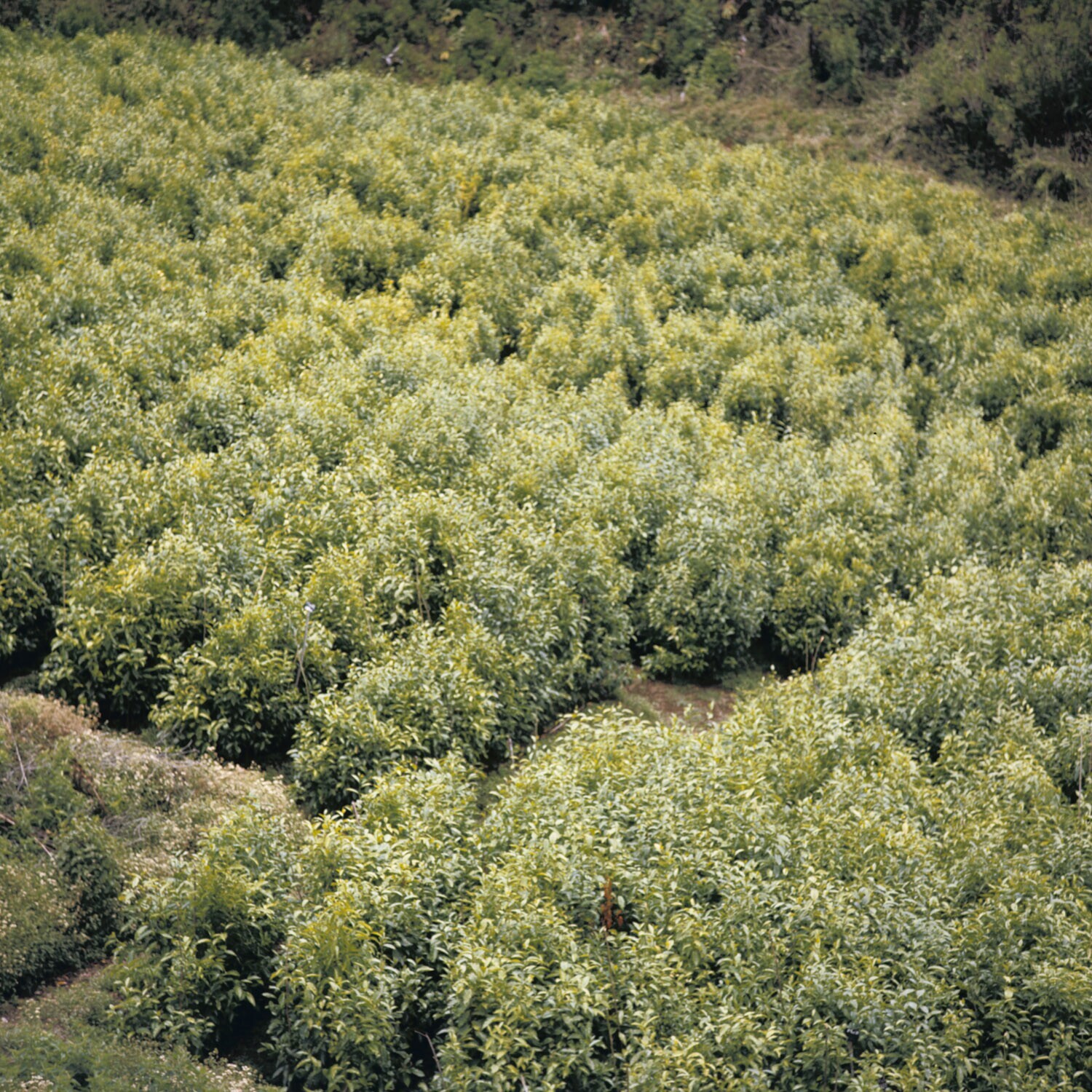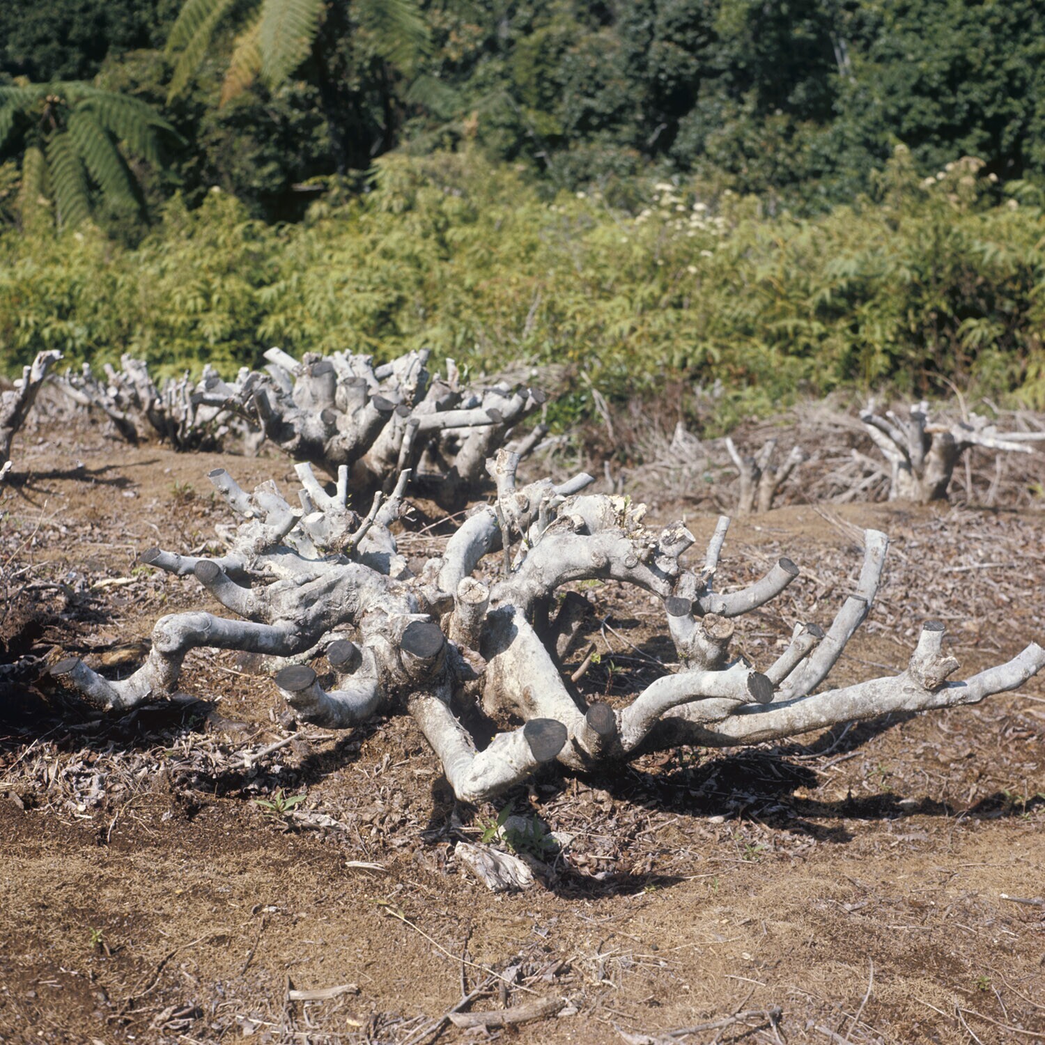 Overzicht plantage met diepsnoei toegepast