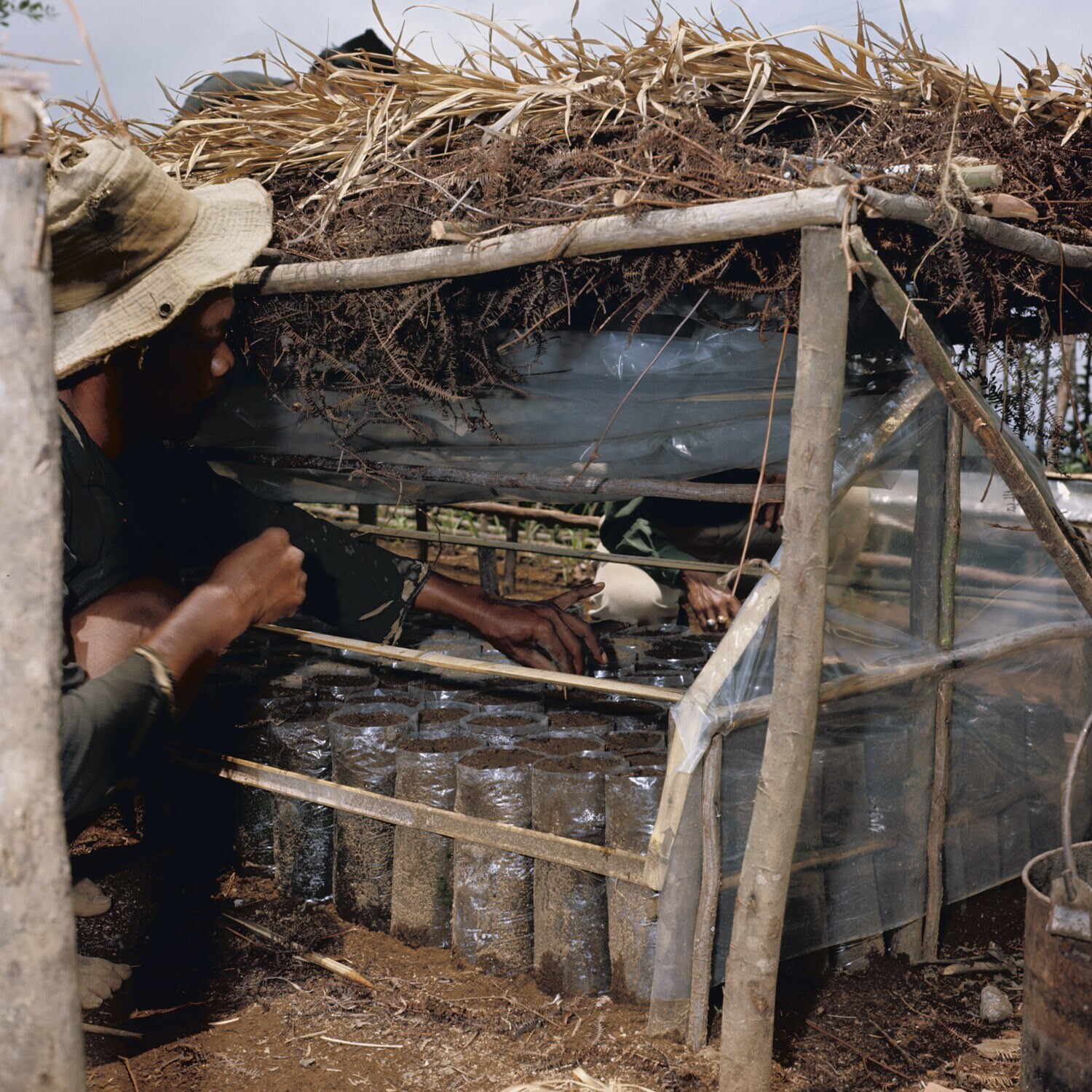 Thee: jonge bladstekken in kweekzakken