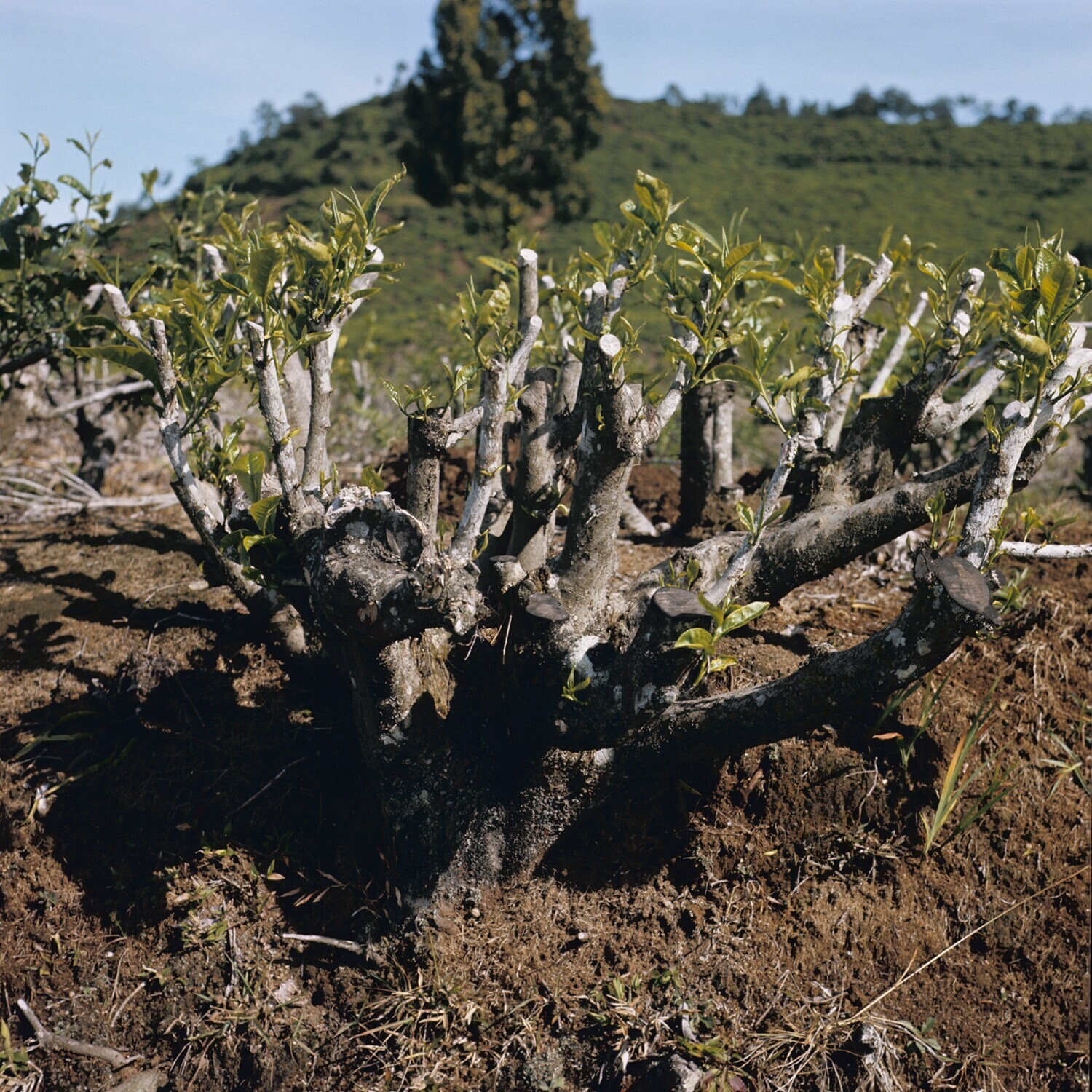 Theestruik, diepsnoei toegepast
