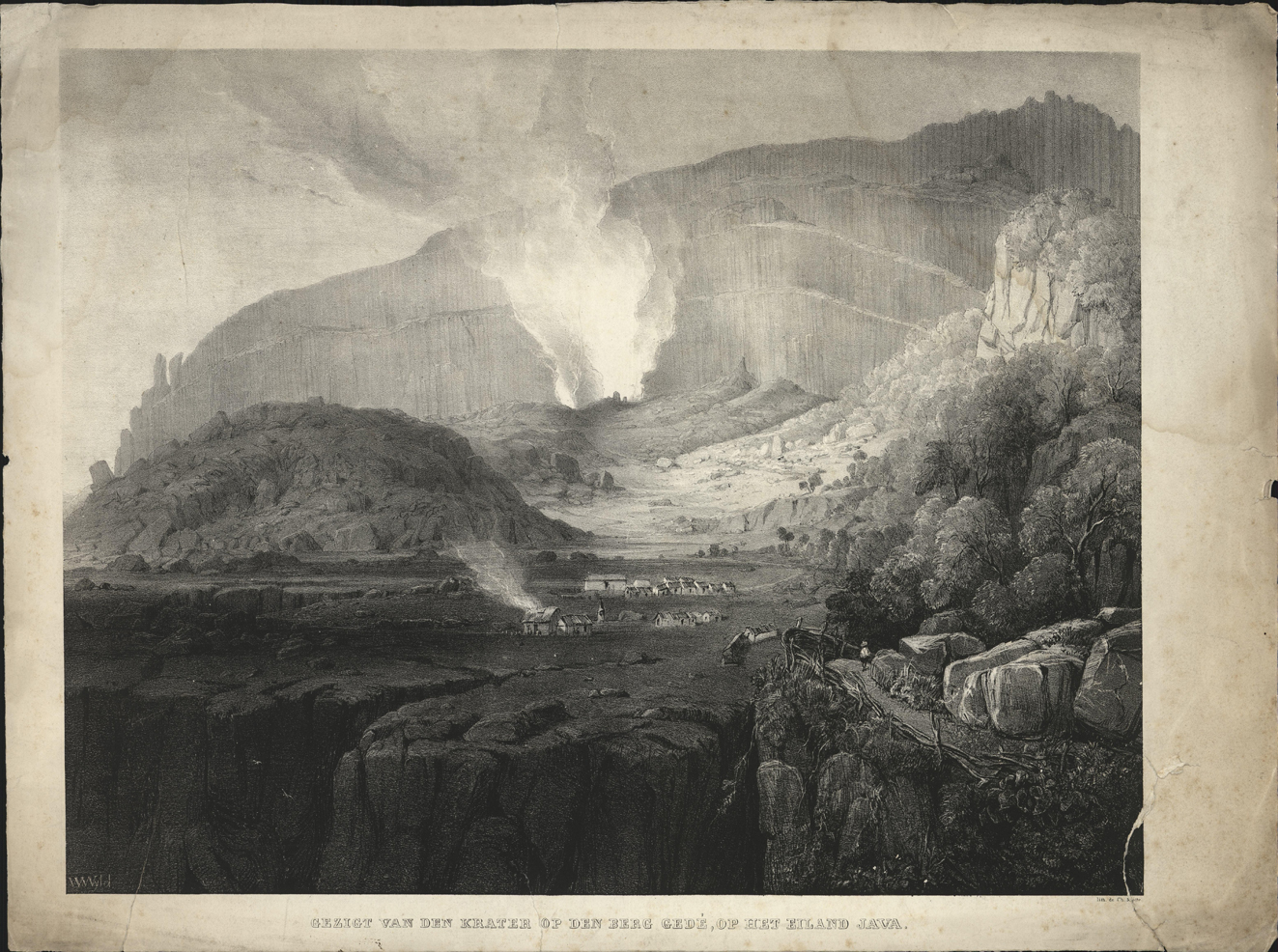 Gezigt van den krater op den berg Gedé, op het eilan...