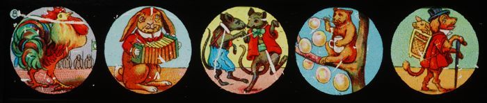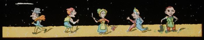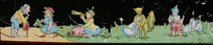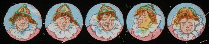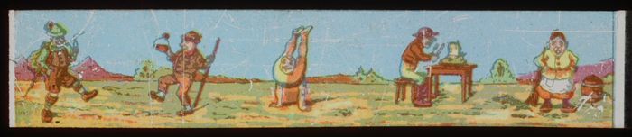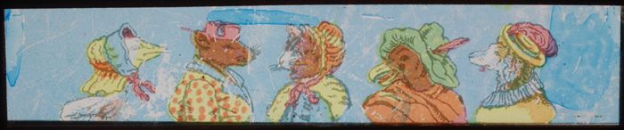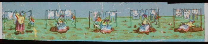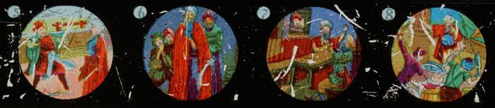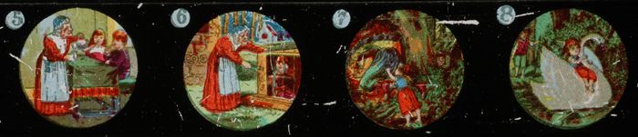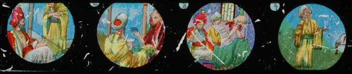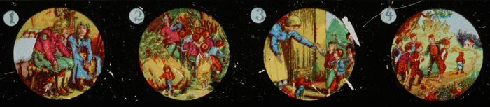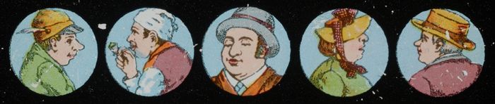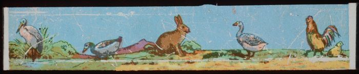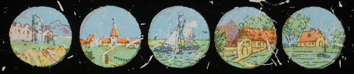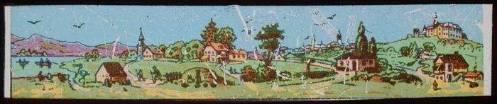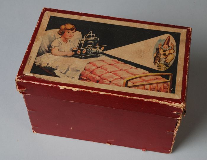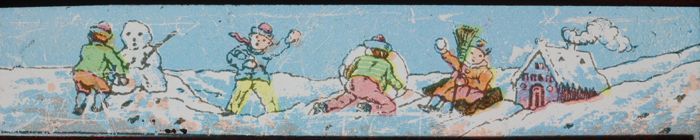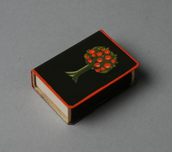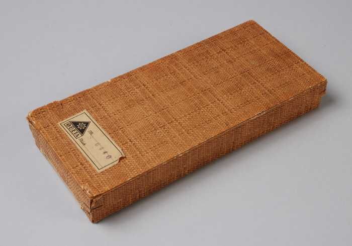 Langwerpig kartonnen doosje met daarin zes beschilde...