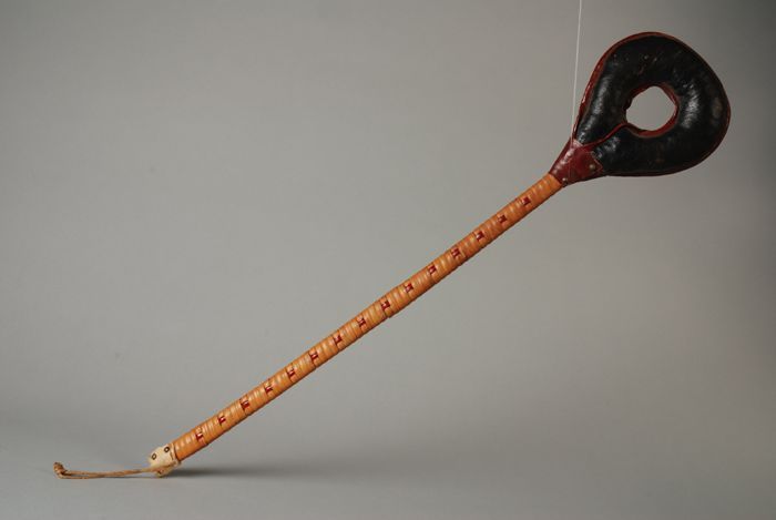 Zwart met rode kledenklopper met rotan steel