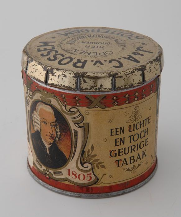 Speciaal ijzeren tabaksblik "J. & A.C. V. ROSSEM. RO...