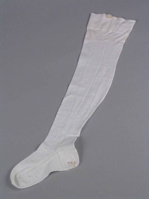 Paar lange kousen van fijn wit tricot katoen