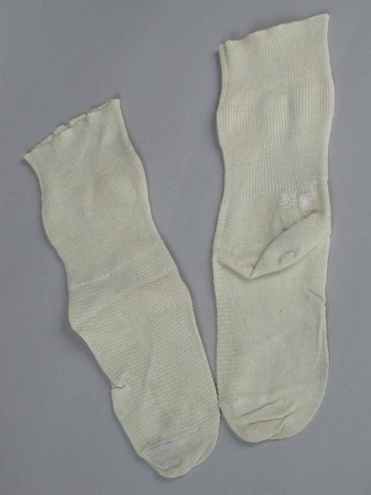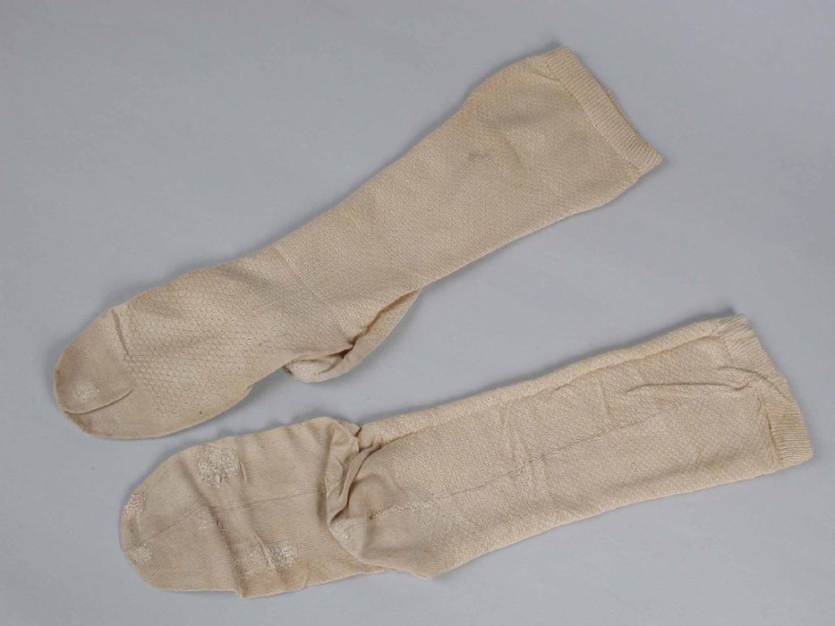 Paar sokken van crèmekleurig fijn tricot katoen met ...