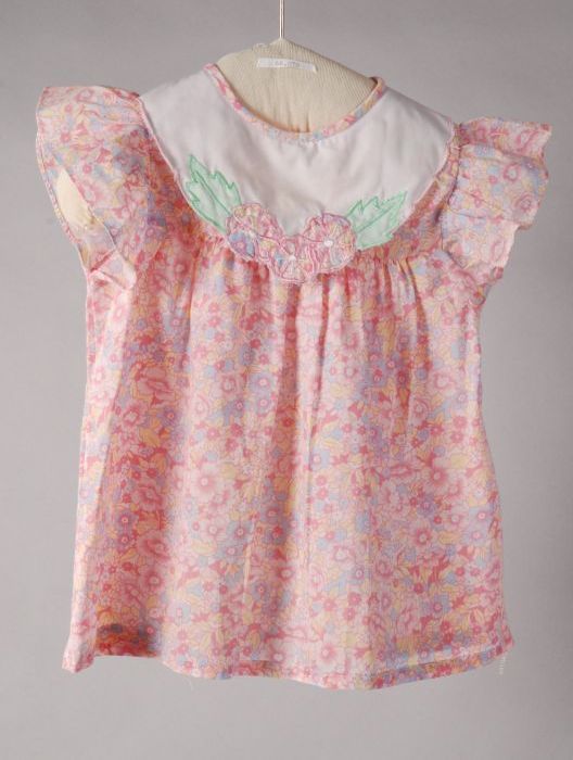 Kinderjurk met bloemmotieven in roze, geel en lichtb...