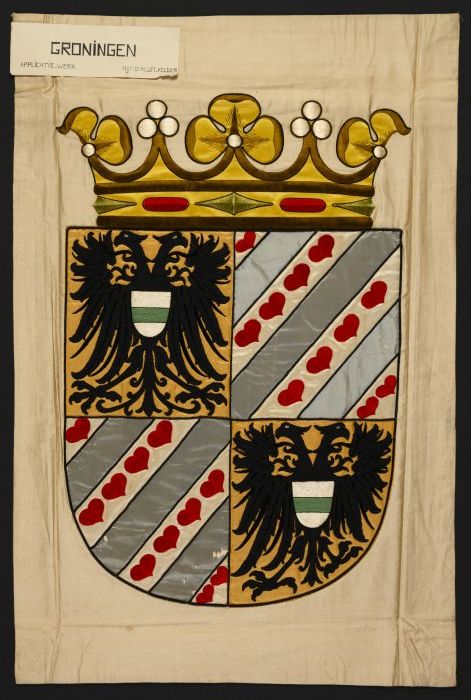 Crèmekleurig zijden vaandel met het wapen van Gronin...