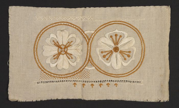 Borduurwerk, lap ecrukleurig katoen met grof borduur...
