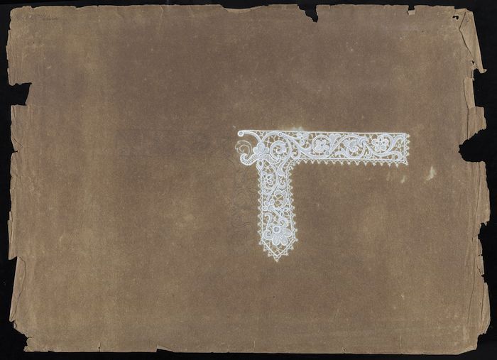 Ontwerp kanten kraag, witte inkt op bruin papier, pr...