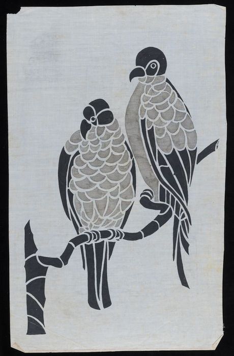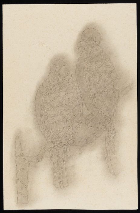 Doorstuifpatroon, tak met daarop twee vogels, proefs...