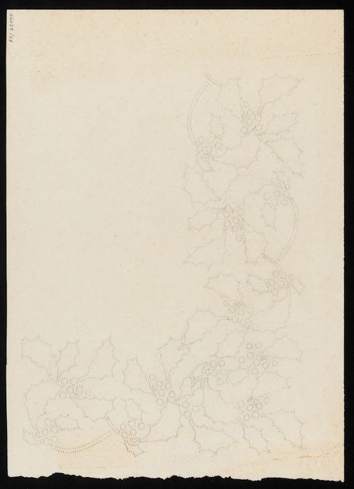 Doorstuifpatroon, brede rand met motief van hulsttakken