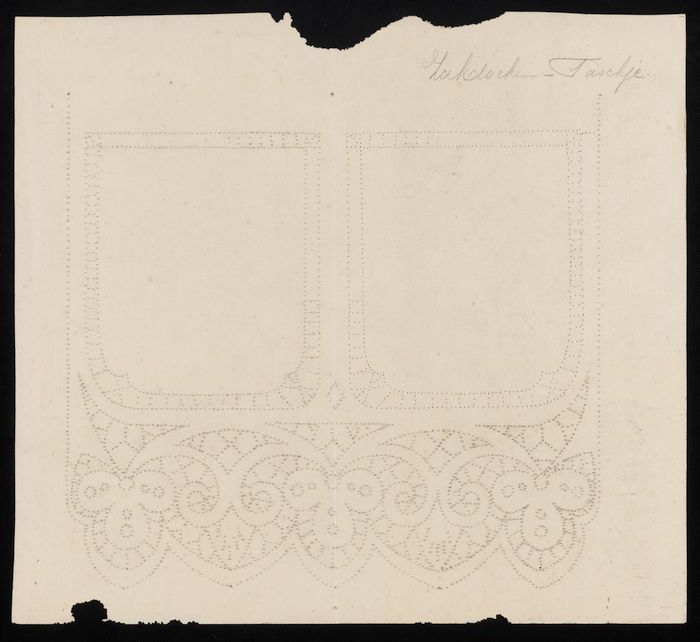 Doorstuifpatroon zakdoekentasje, proefstuk IMR