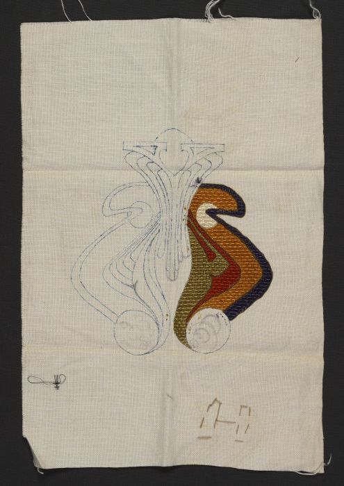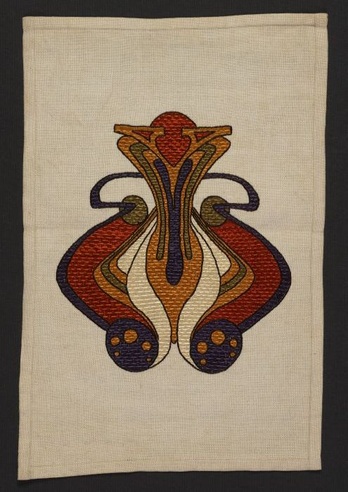 Borduurwerk, symmetrisch fantasie-motief in veelkleu...