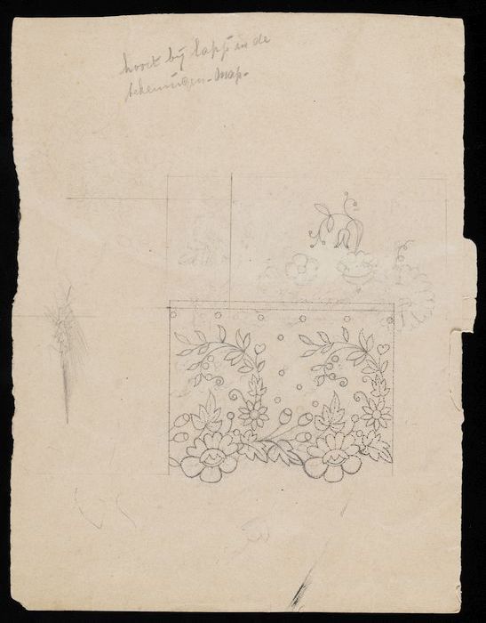 Onvoltooid doorstuifpatroon, ontwerp in potlood op i...