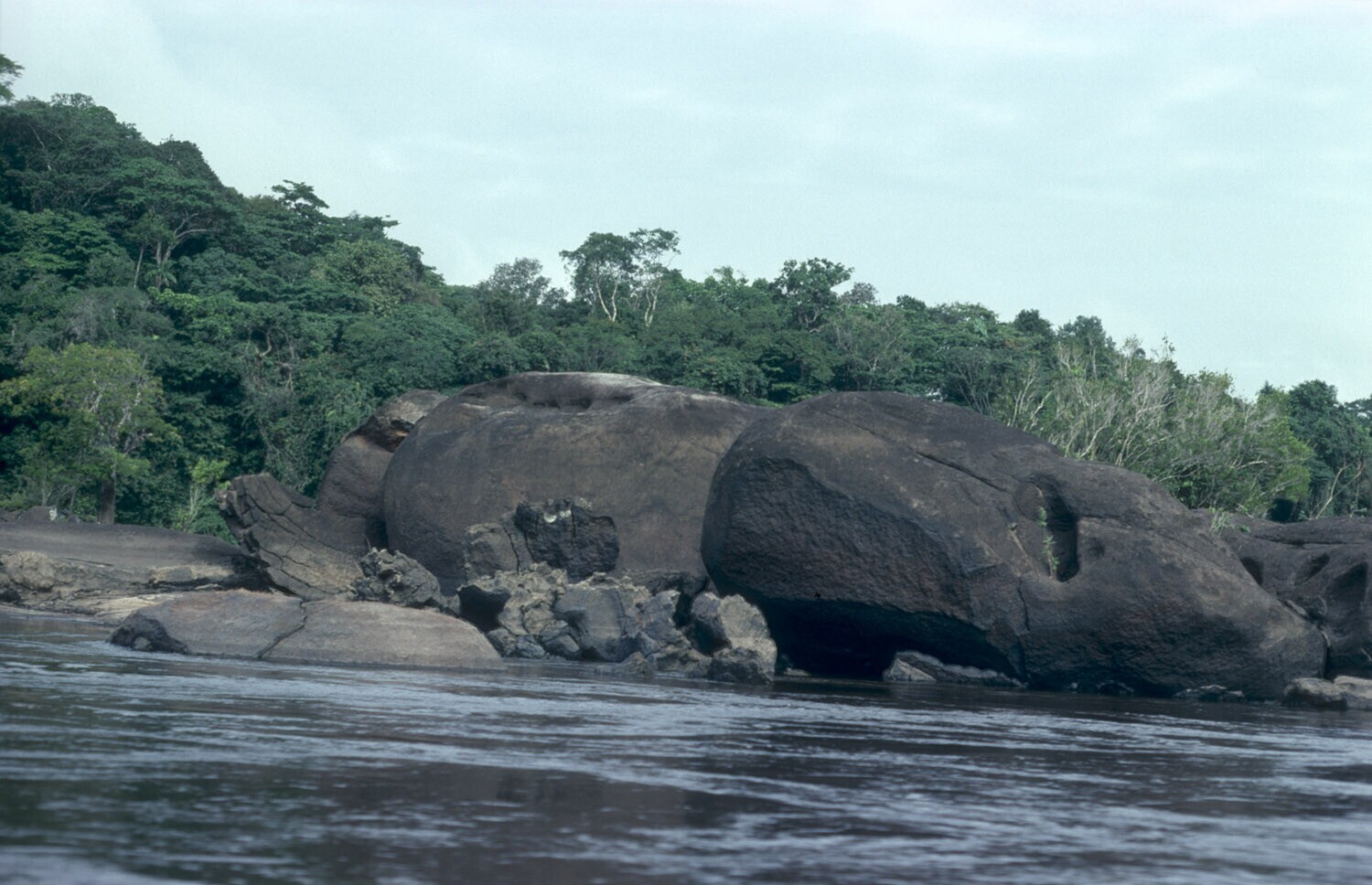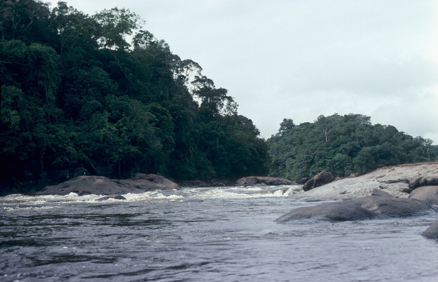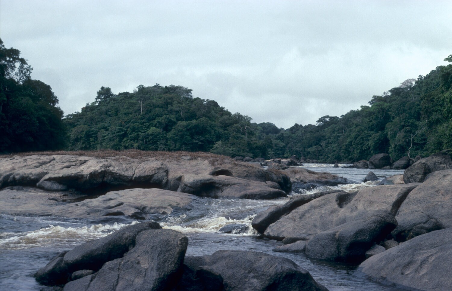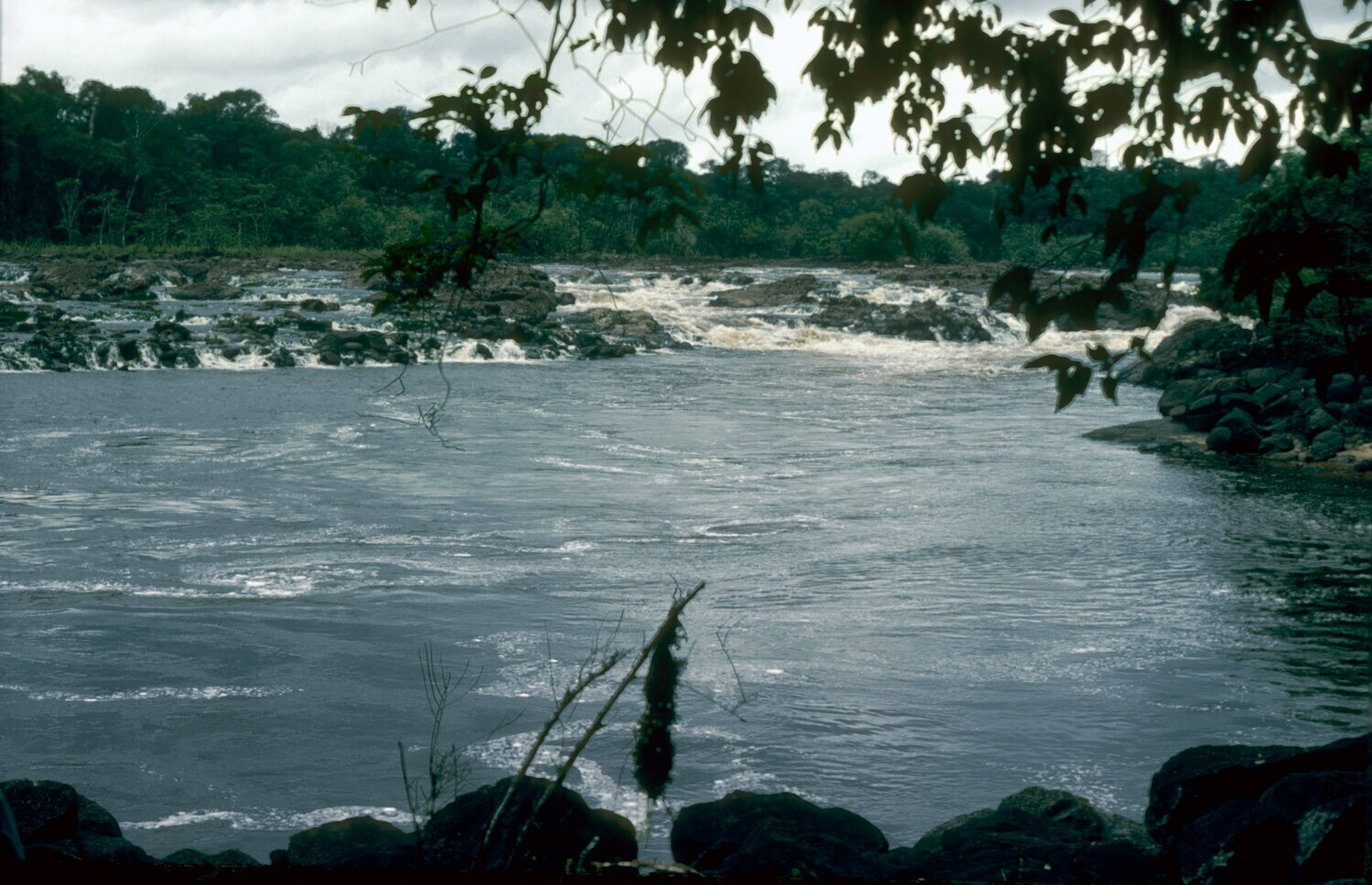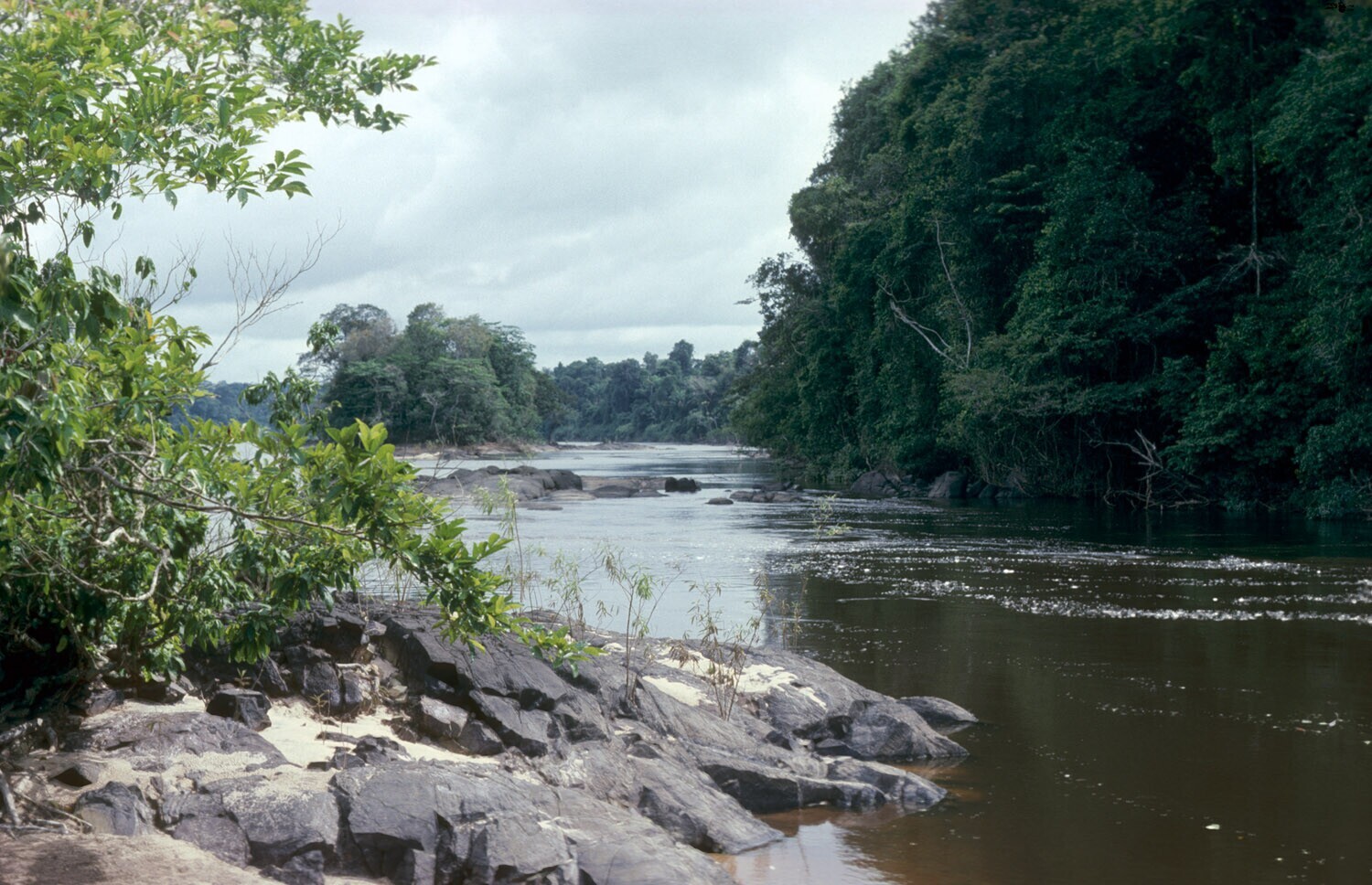Gezicht op de Coppename rivier, bij het Foengoe-eiland