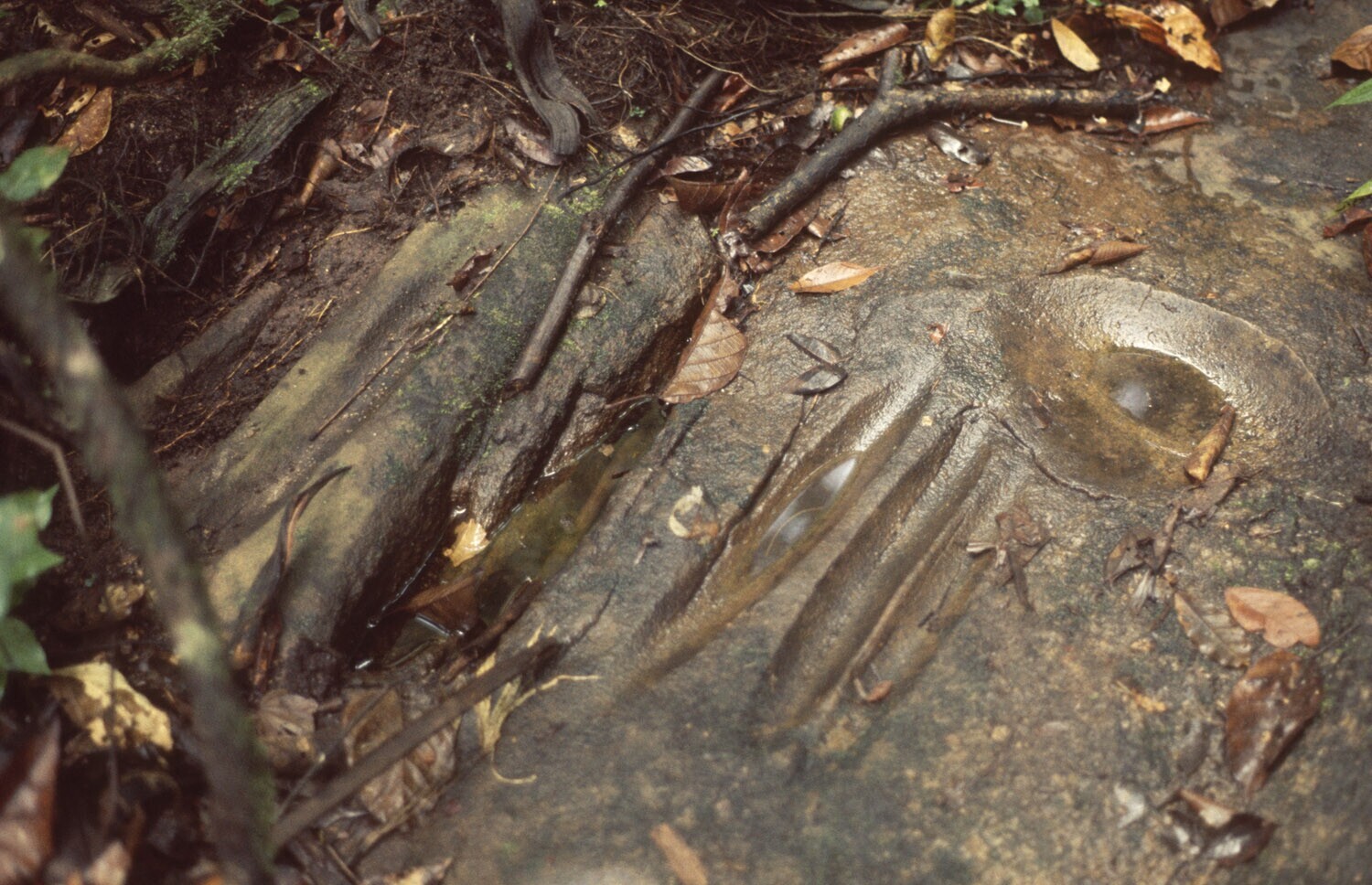Slijpplaats van stenen bijlen van de vroegere inheem...