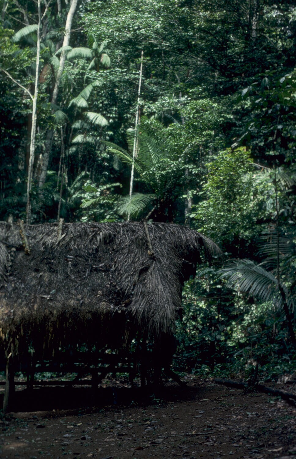 Het dorp Powaka; draagmand, maniokpers en trog