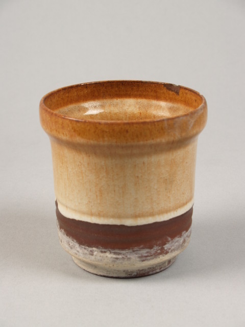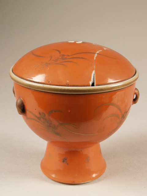 Pot met deksel en kom met oranje glazuur en verguld ...