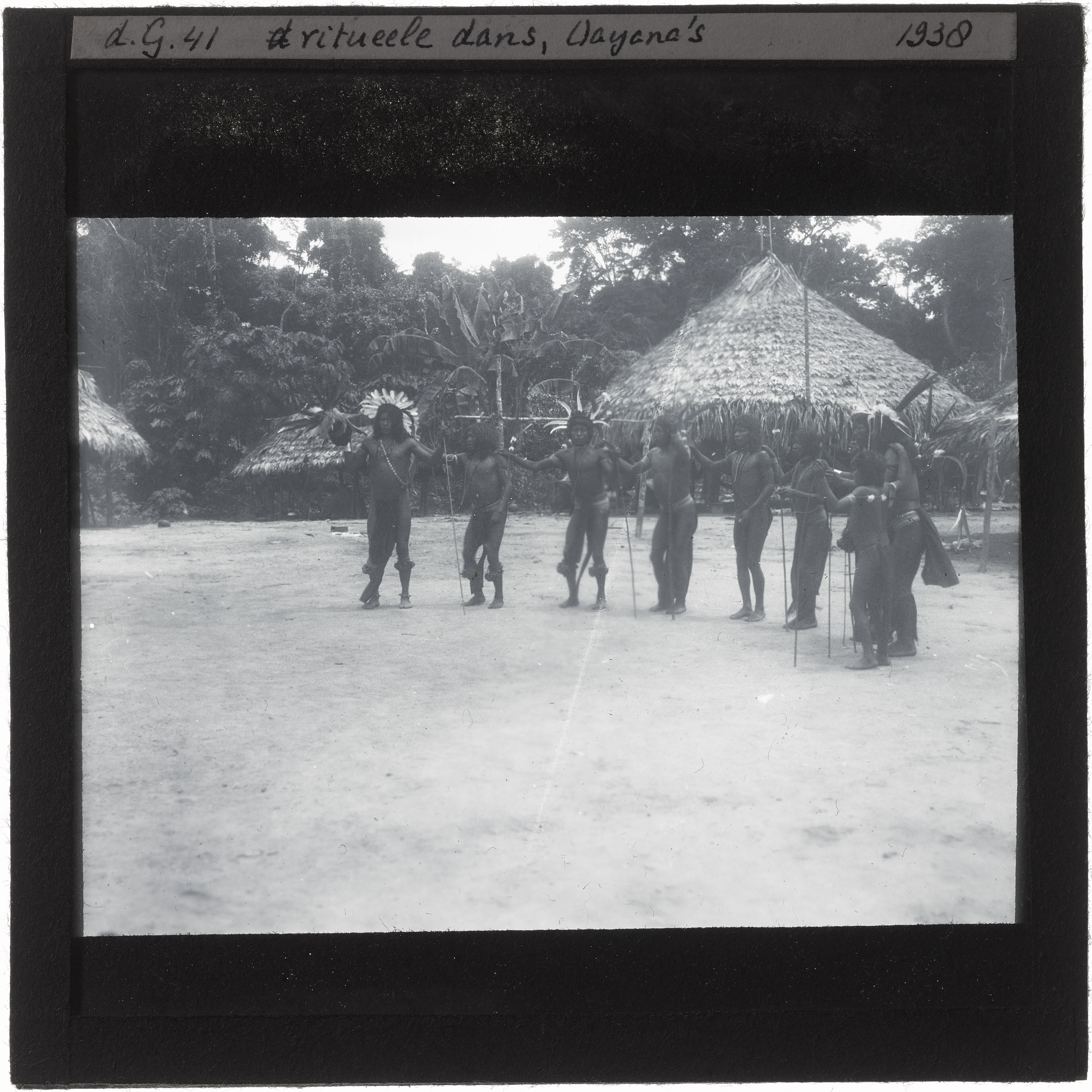Rituele dans met speren en veren hoofdtooien