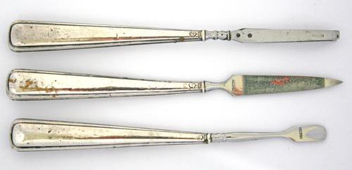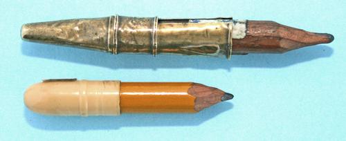 Potloodhouders van messing en been.