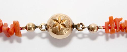 Bloedkoralen ketting met gouden slot.