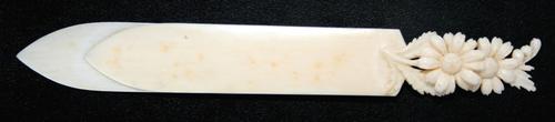 Bladwijzer / Boekenlegger, van ivoor met bloemendecor.