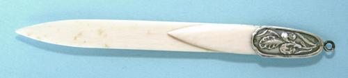 Bladwijzer / Boekenlegger, van been met een bronzen ...