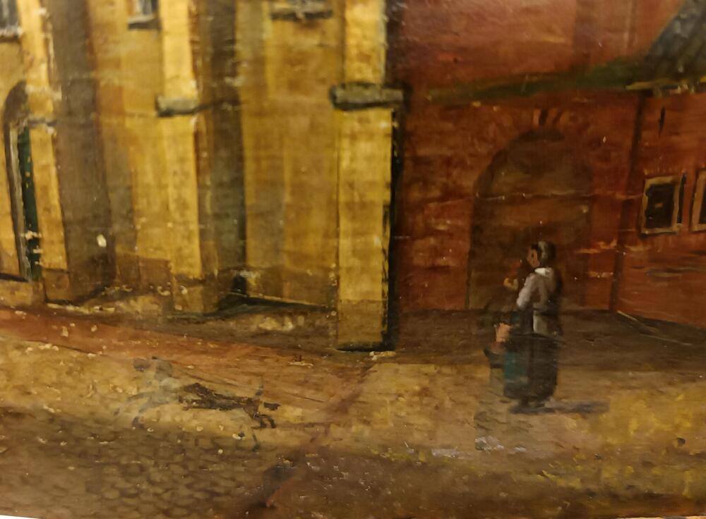 De schilders in de Langekerkstraat bij het schildere...