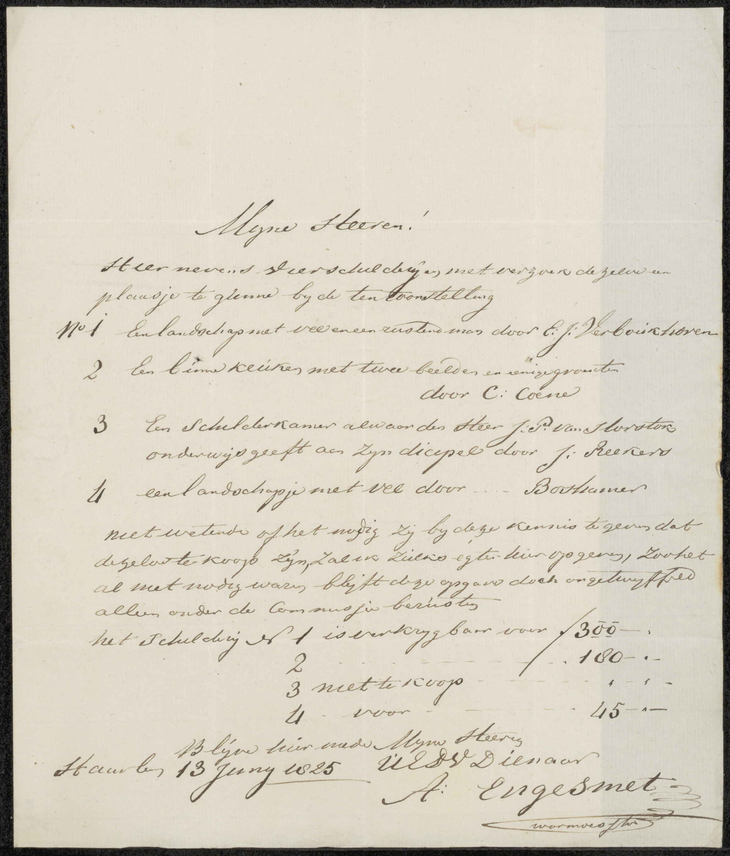 Brief aan de Commissie van de Tentoonstelling van Le...