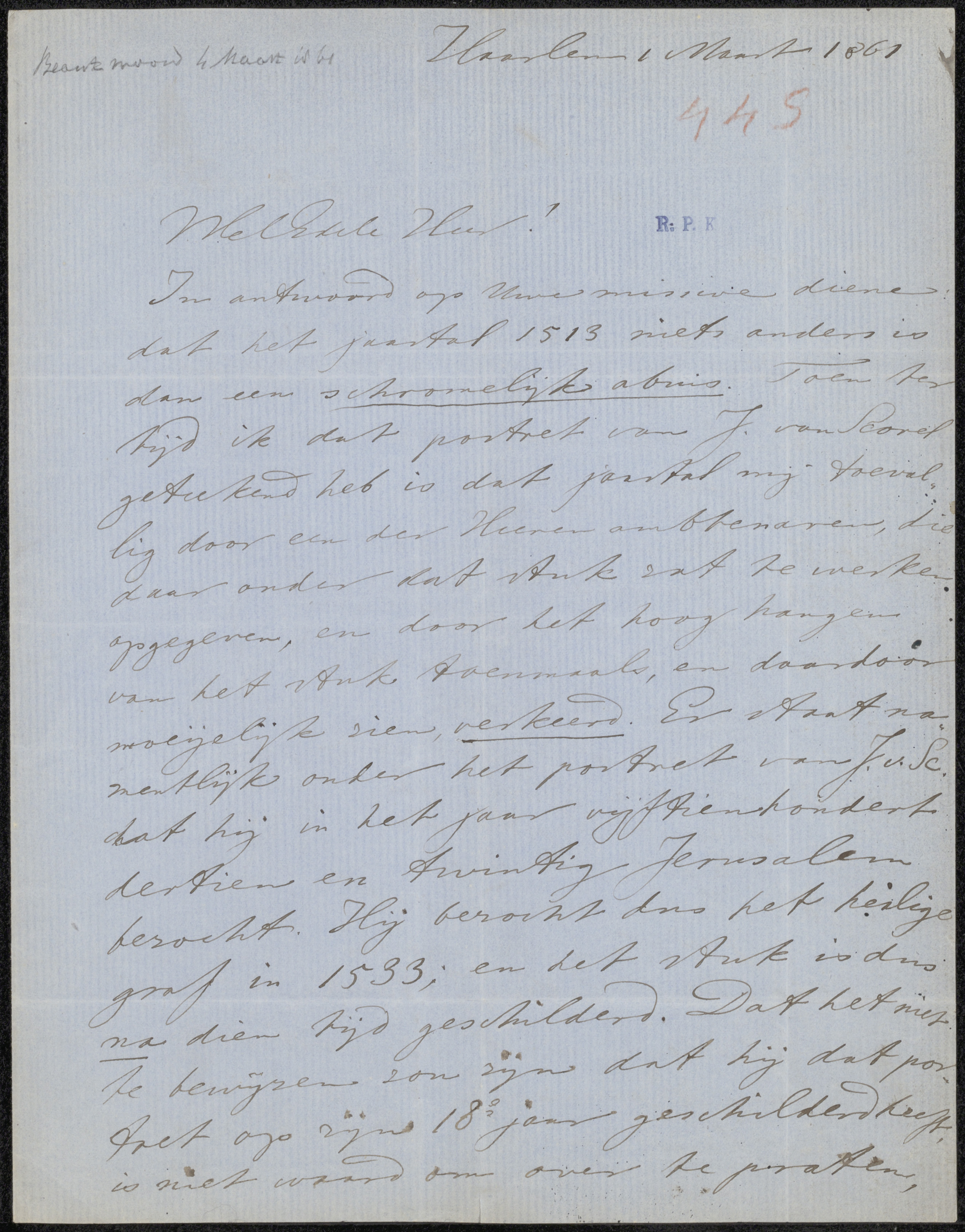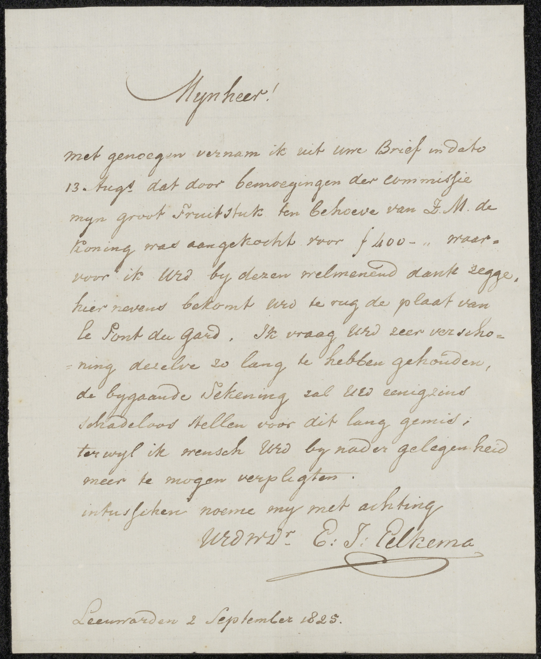Brief aan jonkheer Barthold Willem Floris van Riemsdijk