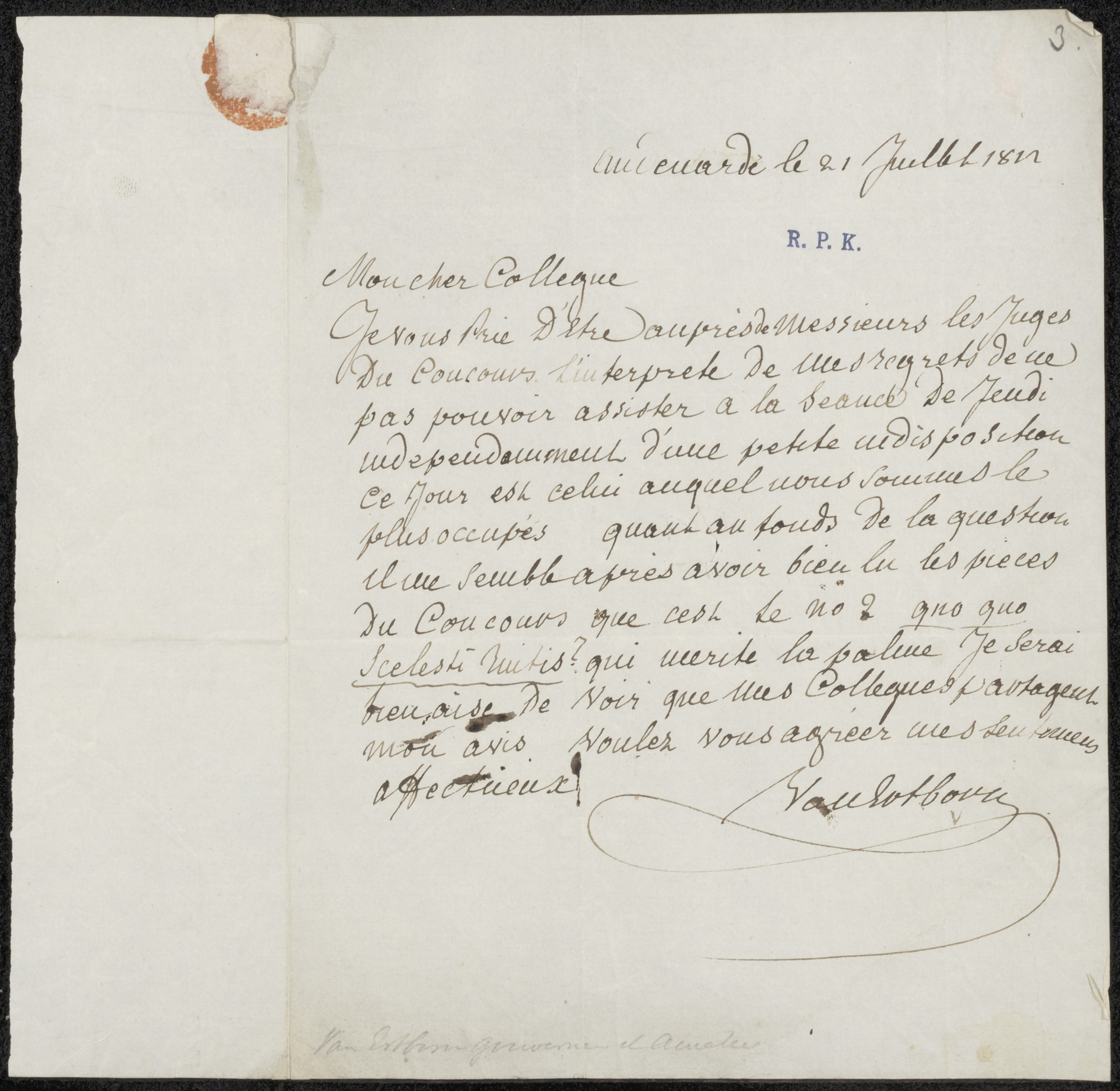 Brief aan Jean Zacharie Mazel