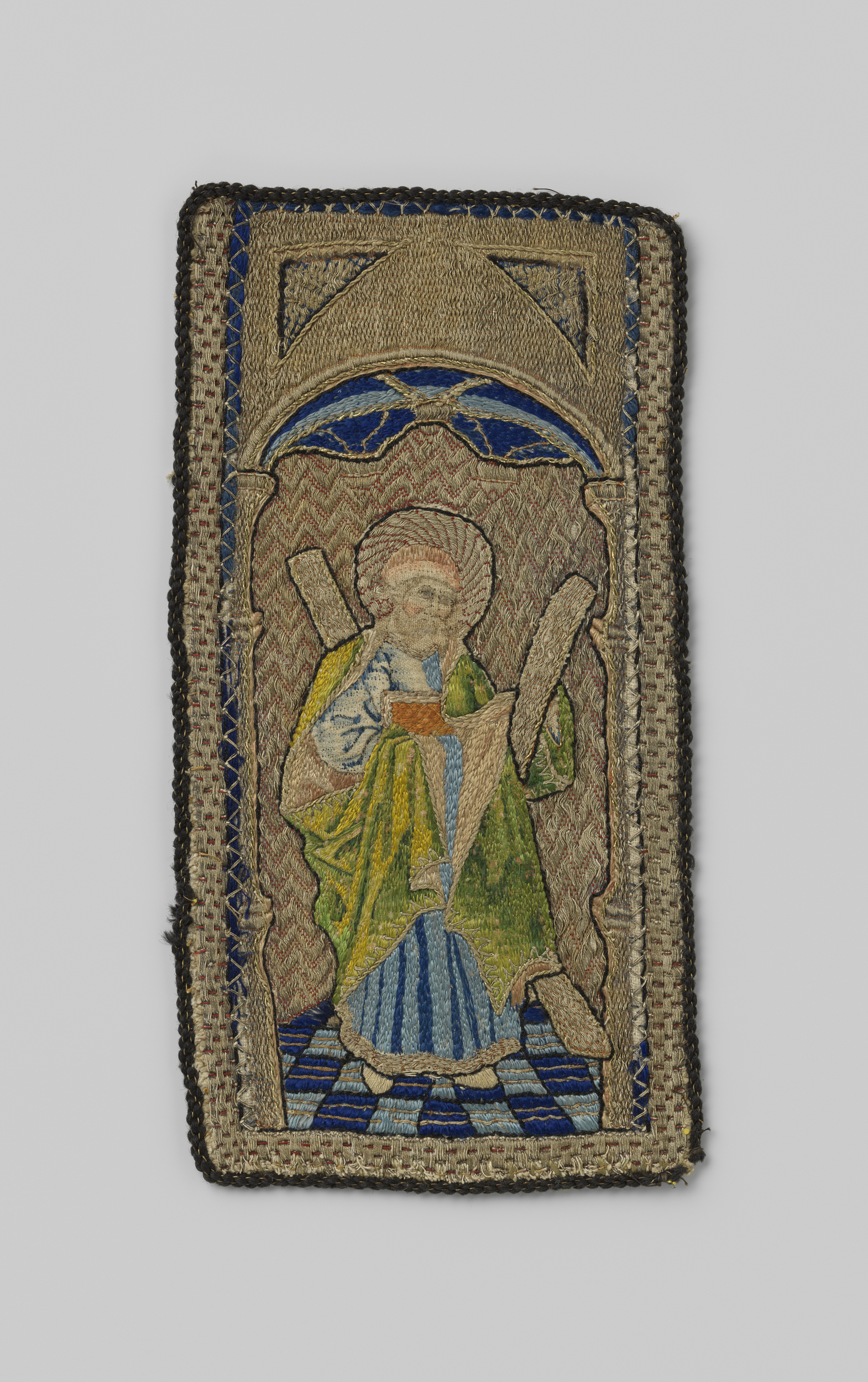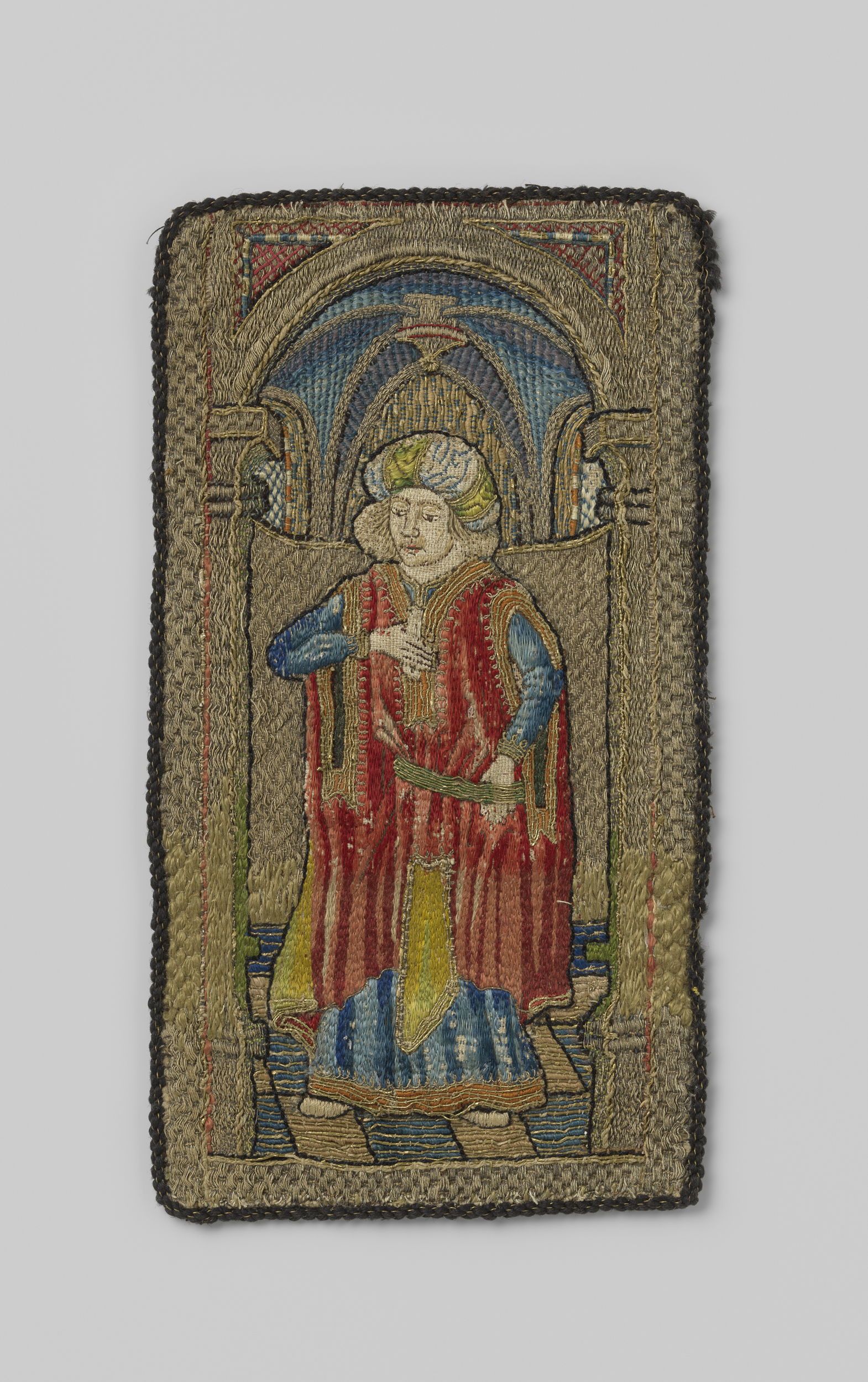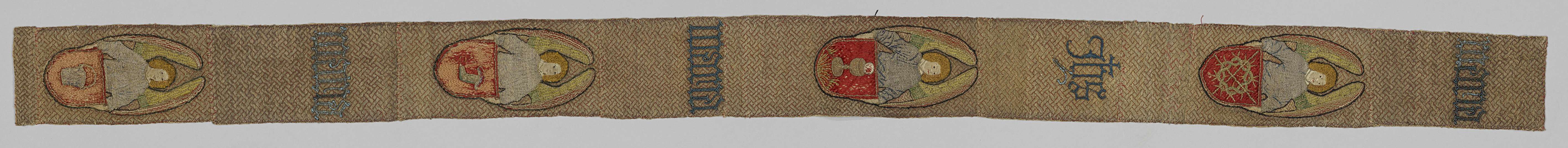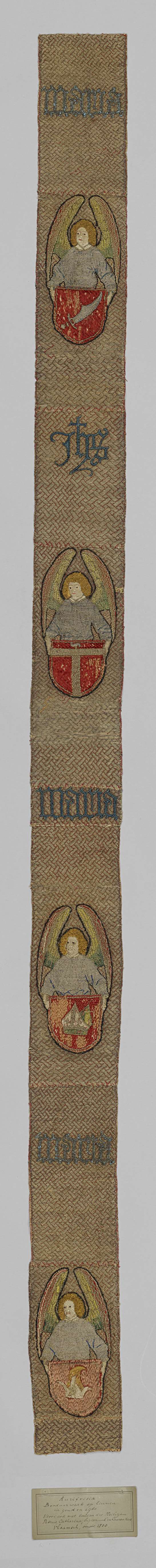 Fragment van een aurifries, met borduurwerk van zijd...
