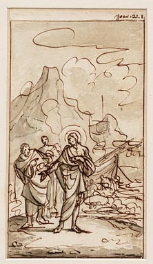 Jezus met Petrus en Johannes bij de zee van Tiberias...
