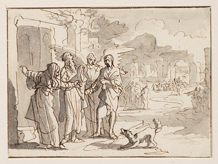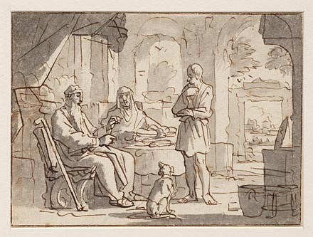 De oude Tobias met naast zich zijn vrouw, vermaant z...