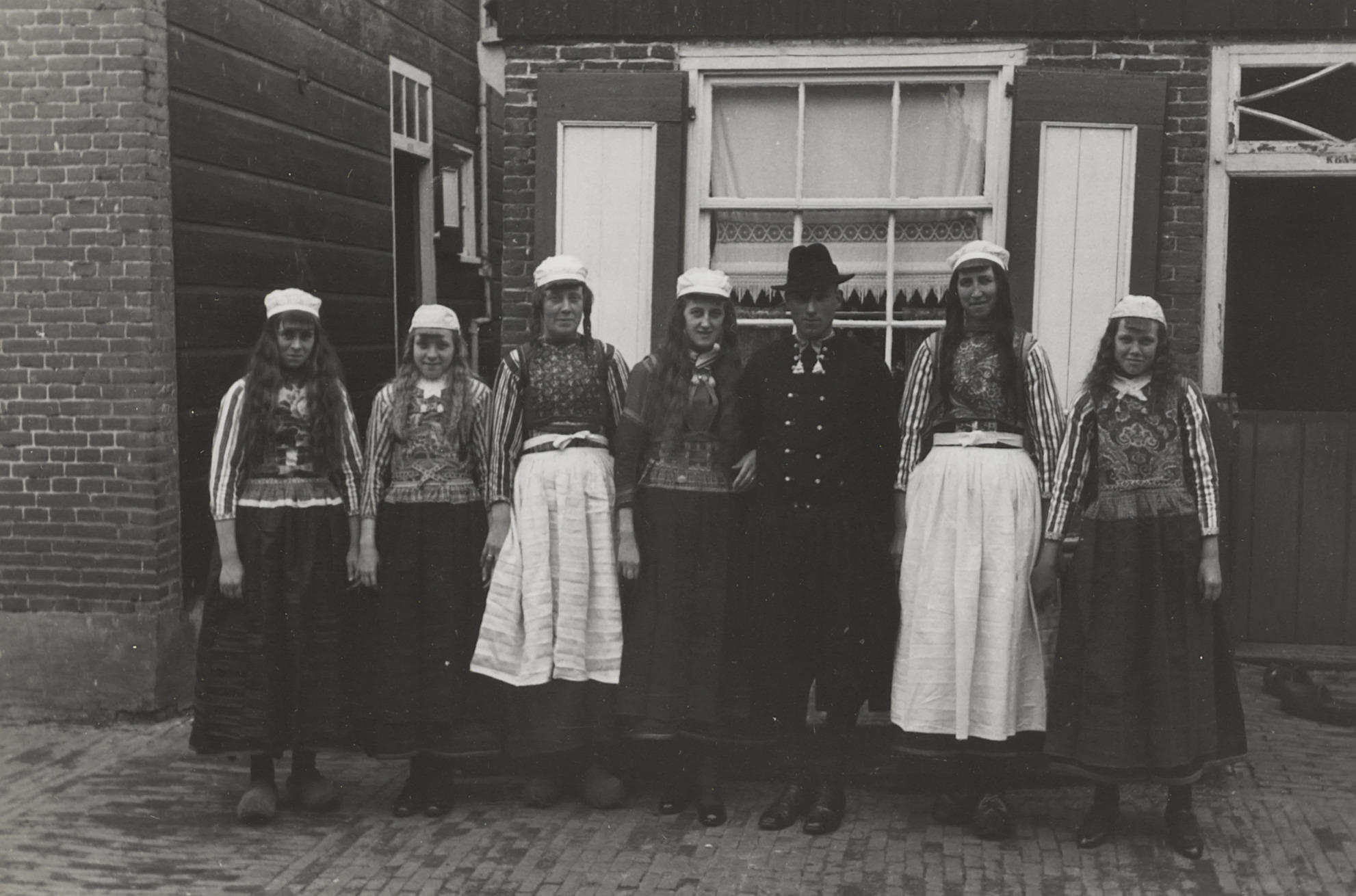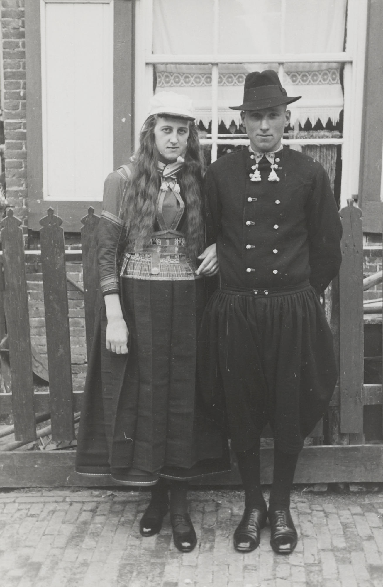 Bruidspaar in ondertrouwpak, Marken, 1943 (zwart-wit...