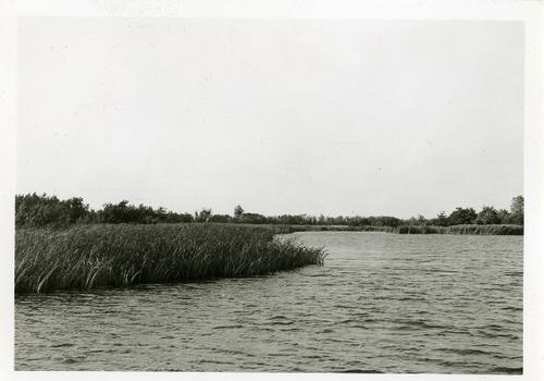Prentbriefkaart in zwart-wit van de IJsselmeerkust b...