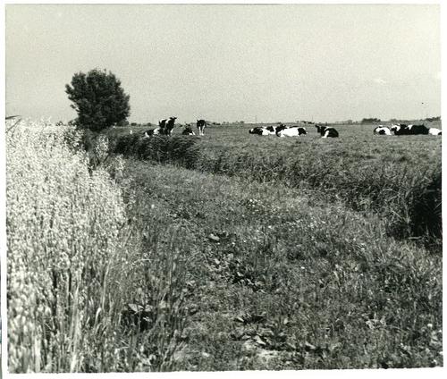 Foto in zwart-wit van een akker met haver door J.D. ...