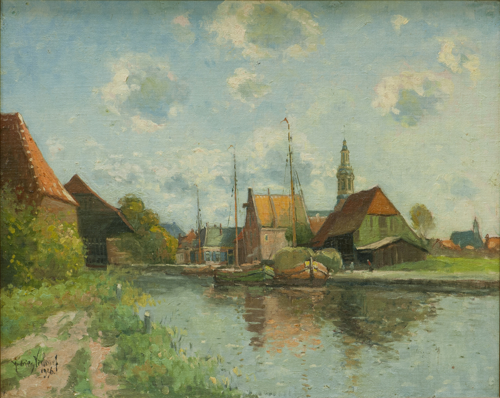 Schilderij met daarop de haven van Nijkerk, 1926