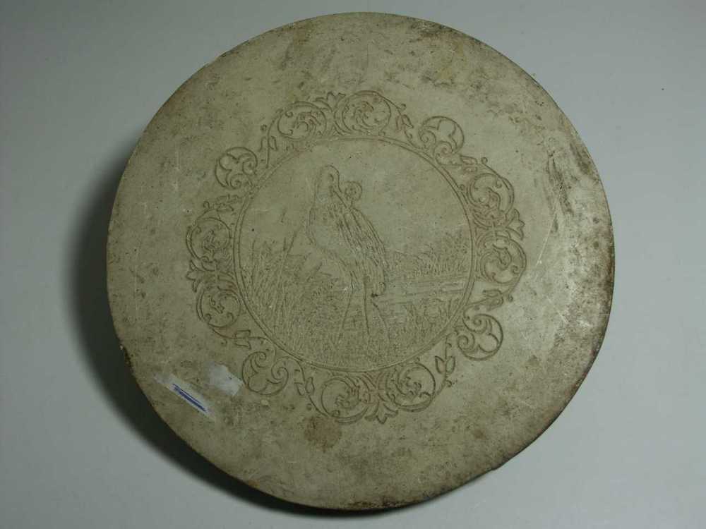 Stuifvorm van gips met afbeelding van een ooievaar m...