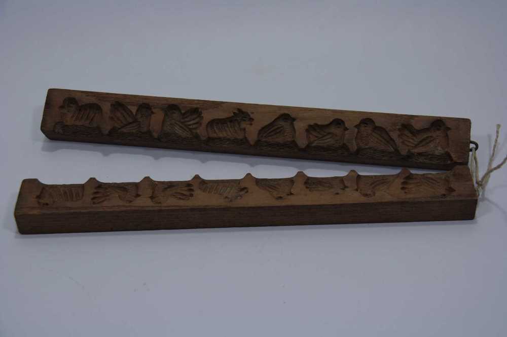 Suikerwerkplank van hout met 8 figuren, o.a. vogels ...