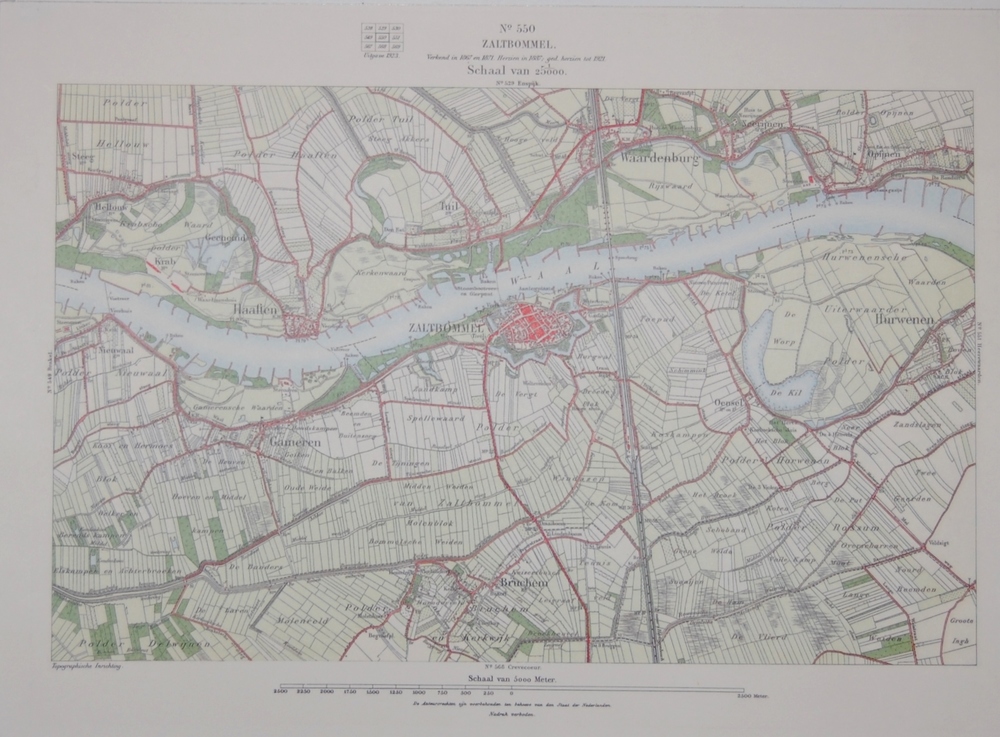 topografische kaart Zaltbommel met plaatsen overkant...