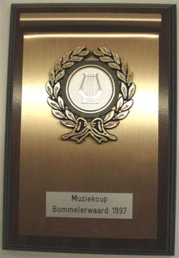plaquette hout en metaal afkomstig van Harmonie Gene...